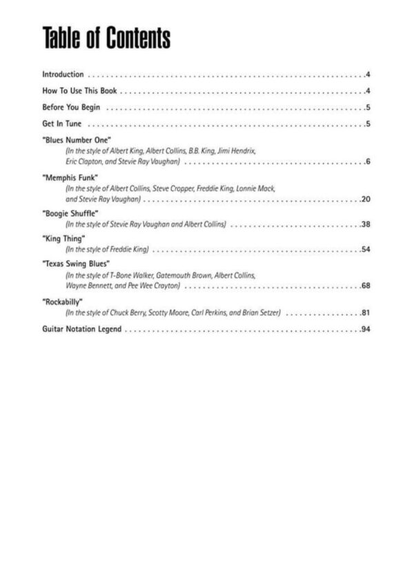 Learn lead guitar in the styles of Albert Collins, Eric Clapton, B.B. King, Stevie Ray Vaughan and others. Book includes phrase-by-phrase performance notes