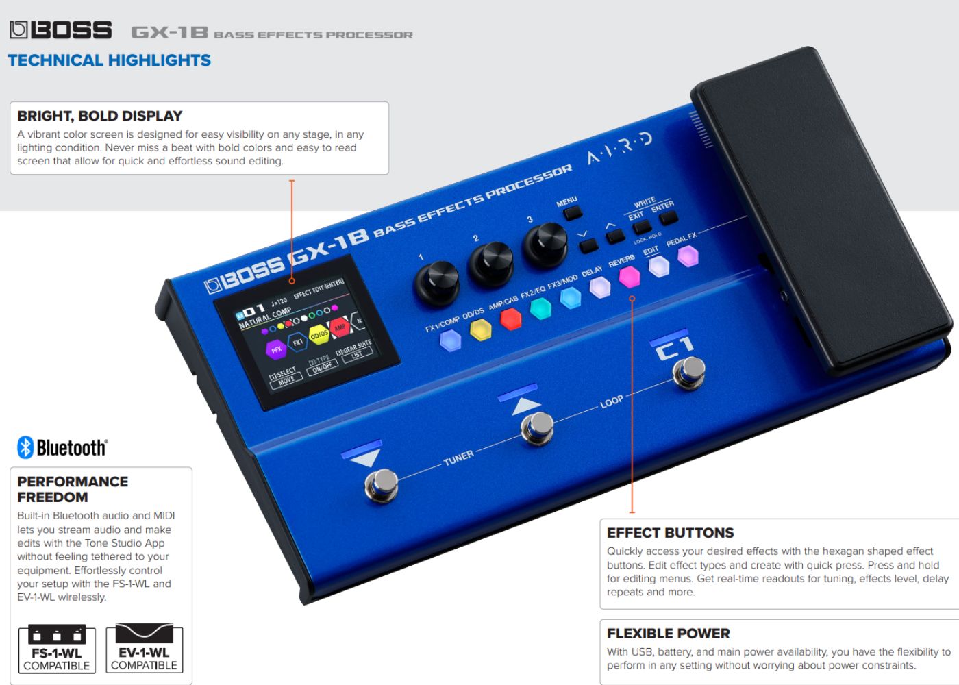 BOSS GX-1B Bass Effects Processor | Ultra-Portable Premium effects
