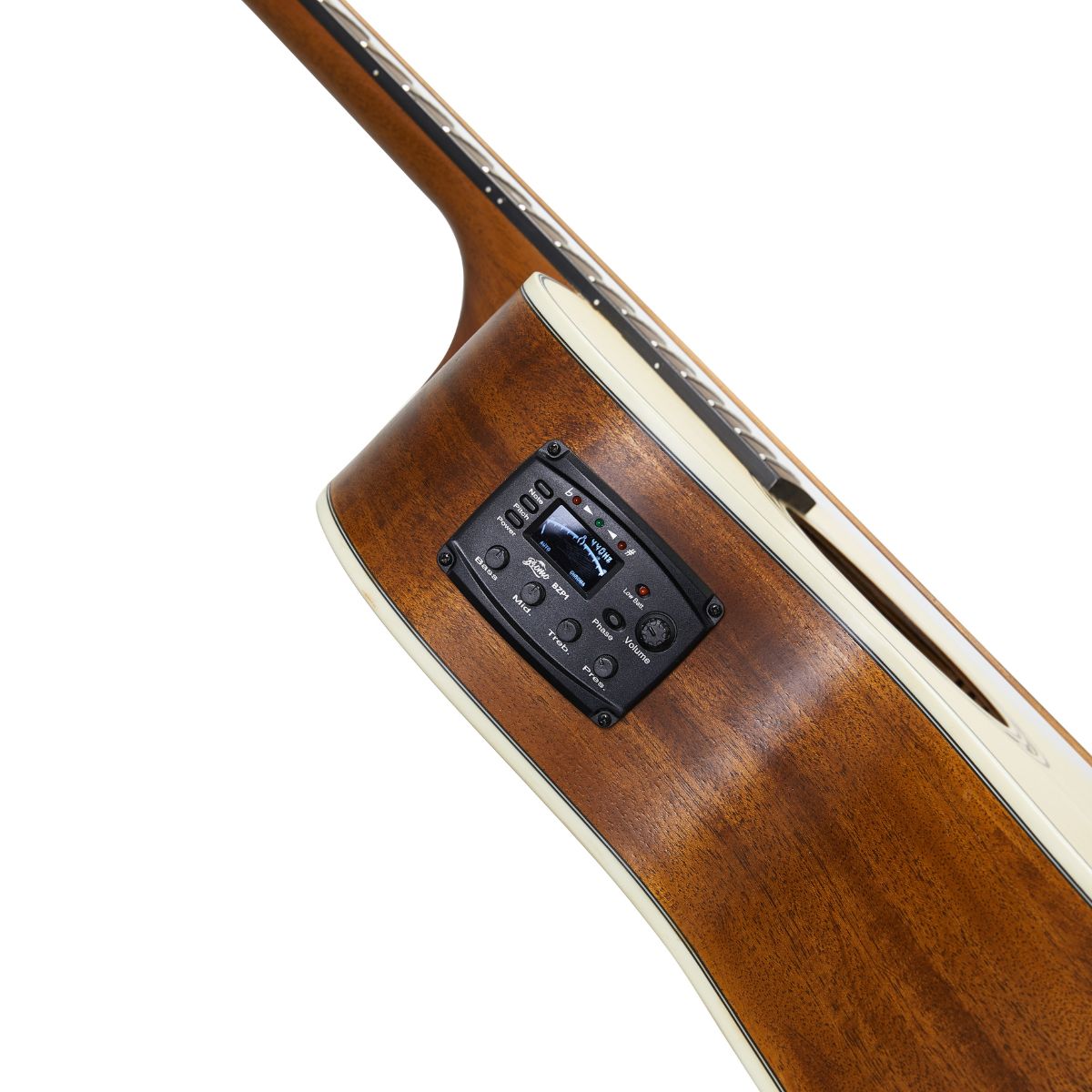 This Appalachian BAA2 Acoustic Electric Auditorium model in Natural Finish has a Spruce top with Mahogany Back, Sides and neck, and excellent standard fitting throughout. It has all you want from a good guitar to start your music journey, great sound, precise intonation and superb playability and its outstanding build and striking tonal quality will reward you with many years of music enjoyment.