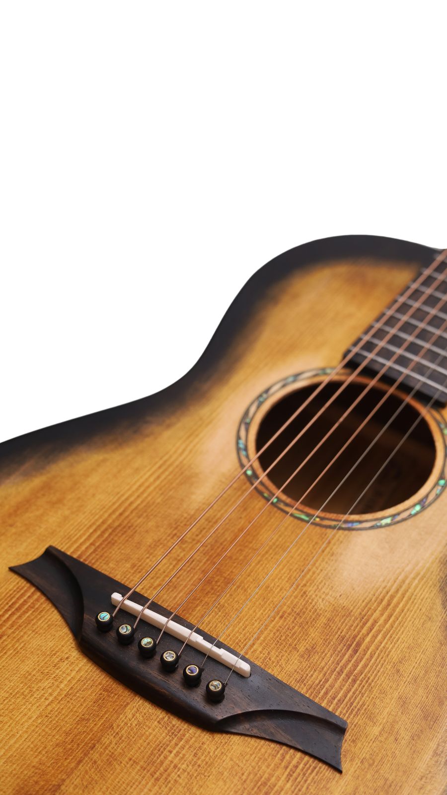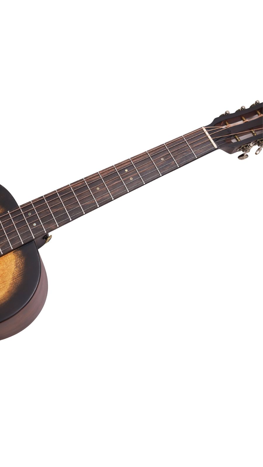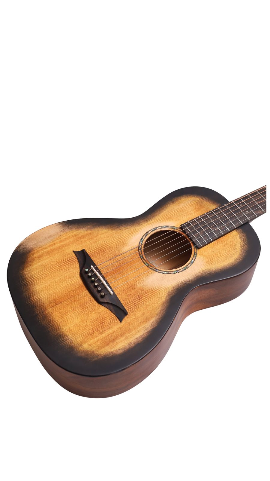 BAR6H with parlor body shape is distinguished by its smaller size and narrower waist, which contributes to a unique tonal quality. This design enhances the midrange frequencies and produces a warm, articulate sound, ideal for fingerpicking and intricate fretwork. The compact dimensions allow for comfortable playing, particularly for those with smaller frames or for extended sessions. Aesthetically, BAR6H parlor guitar exude a vintage charm, featuring intricate craftsmanship and elegant retro vintage sunburst finishes that appeal to both traditional and modern musicians. Overall, it’s blend of sound quality, playability, and visual appeal sets.