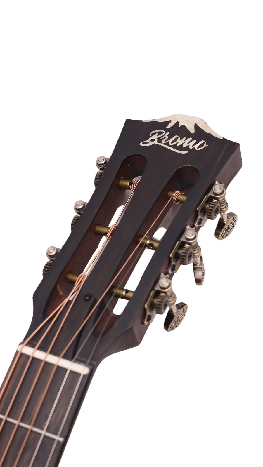 The Vintage “Bromo”, Antique Brass machine heads combine a lightweight design, high precision, and aesthetic appeal, while the Bromo Logo and the artistic engraved patterns on the tunning keys enhance the exclusivity and premium feel of our guitar, making it the perfect choice for those seeking a balance of form and function