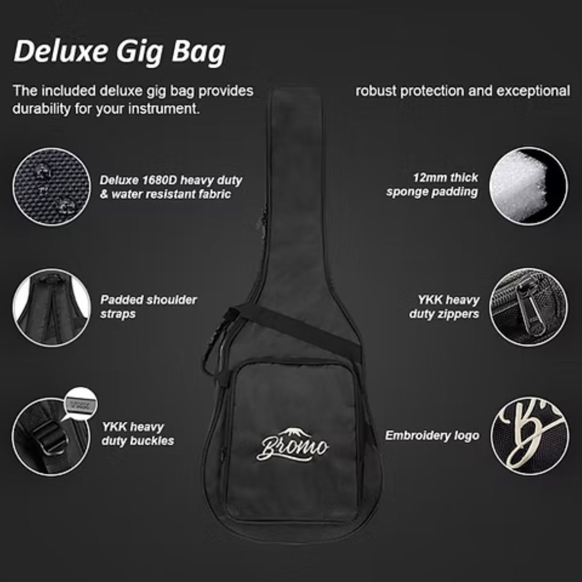 The guitar comes with a high-quality Heavy Duty Carry Bag. This bag offers exceptional durability, water resistance, and ease of transport, ensuring your guitar is well-protected while being easy to carry around in style.
