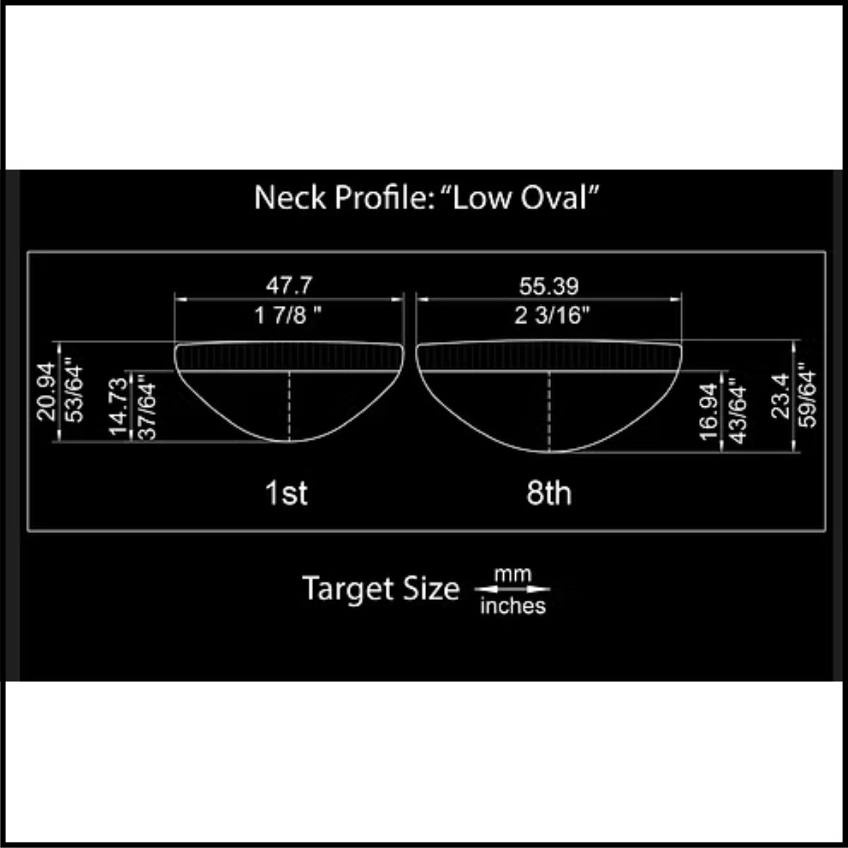 The “Low Oval” neck profile is favoured for its comfort and stability. Its larger yet softer shape provides excellent palm support, reducing fatigue during long playing sessions and ensuring a firmer grip. This design enhances power transfer, resulting in a louder and richer tone, particularly suited for rock and metal genres. Additionally, its unique appearance adds character, making it a great choice for players seeking a distinctive and comfortable playing experience.
