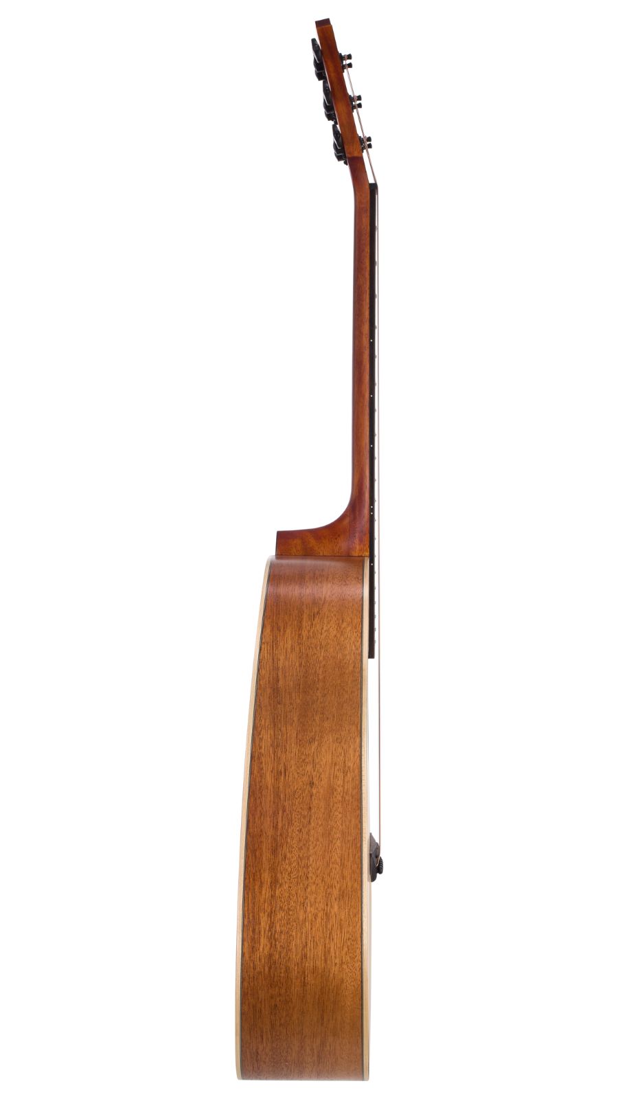 This BAT1 Tahoma series Dreadnought Acoustic Guitar Tahoma Series couples a solid Sitka spruce top with premium mahogany back & sides. Sitka spruce is the 1st choice of most players for its articulate, clear tone and fascinating sustain. Compensated by the warmth and mellowness of the mahogany back, sides and further boosted by the innovative ToneFlow bracing system, Tahoma Series sports crystal clear trebles, sonorous mids and nice warm bass.