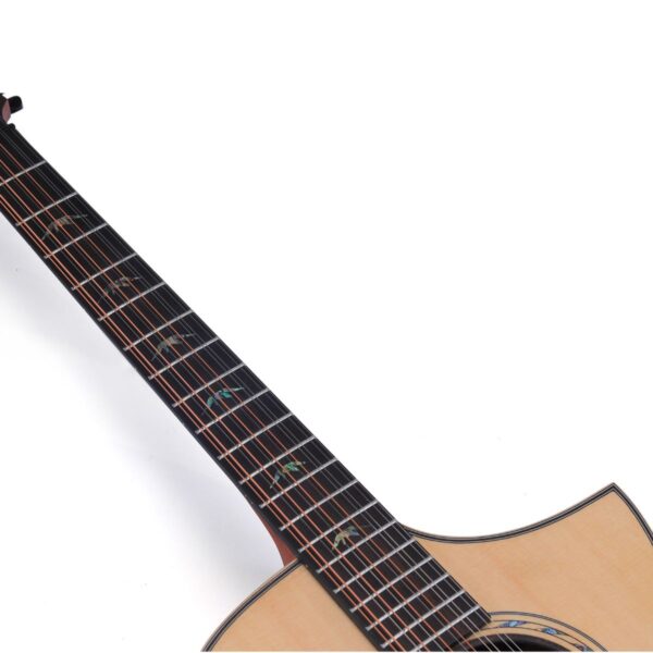 The neck heel is in semi-circle shape, which not only adds aesthetic beauty to this high-end guitar, its extra volume also provides stronger support against the extra string tension.