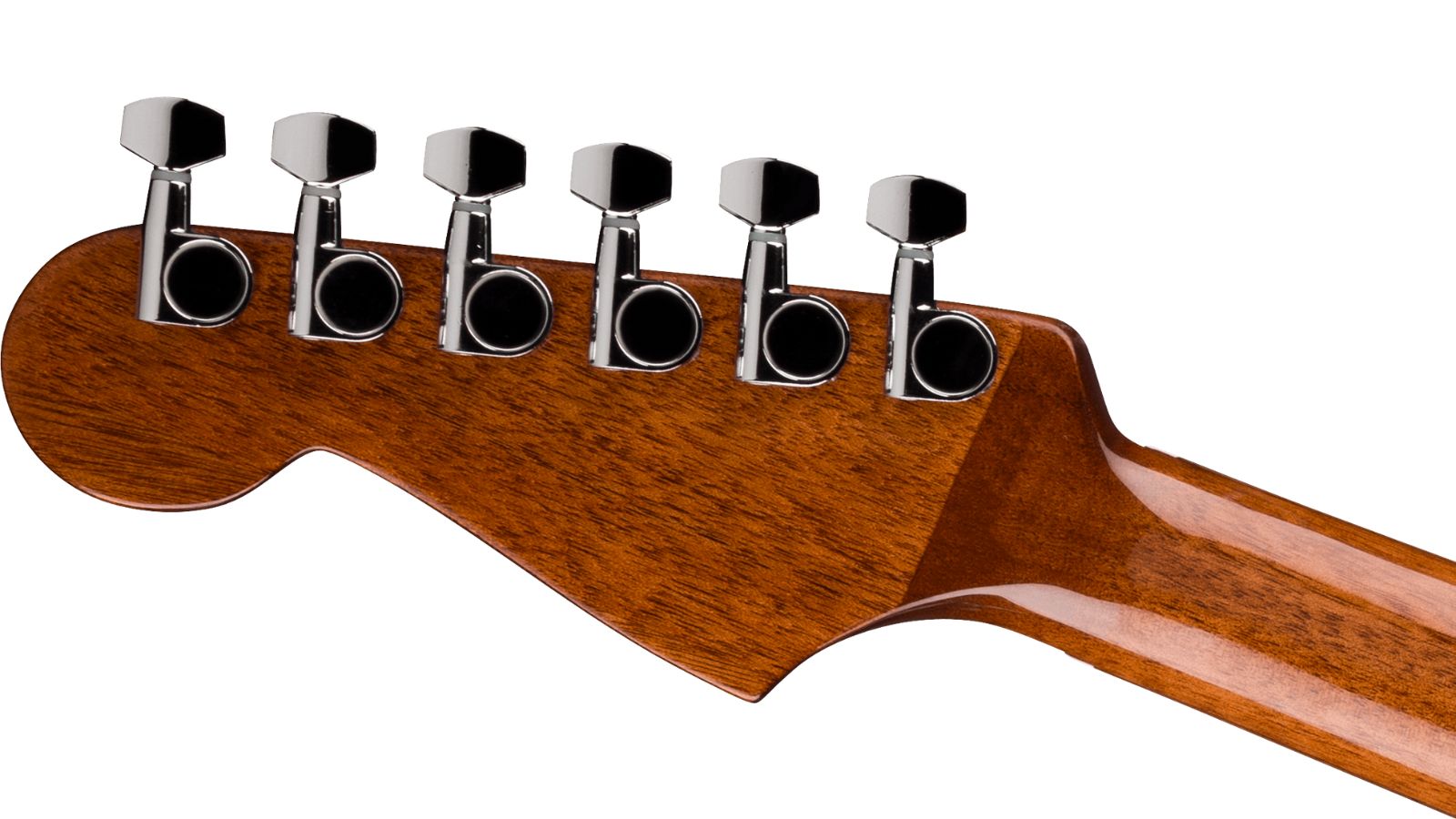 An instantly recognizable Fender design feature, the 6-in-line headstock creates a straight string pull from the nut for optimal tuning machine performance, places all tuners in a linear location for easy access, and the tilt-back design produces a consistent break angle on all strings for even response and string feel.