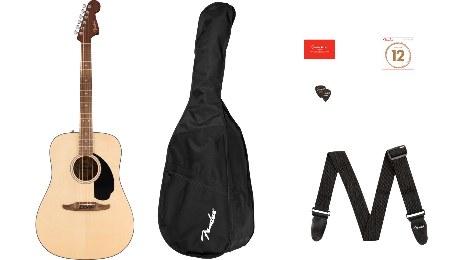 The California Standard Redondo Pack is a convenient collection of guitar essentials in one box, equipping players with a gig bag, strap, picks, an extra set of strings and a 3-month subscription to Fender Play® – the easiest way to learn guitar.