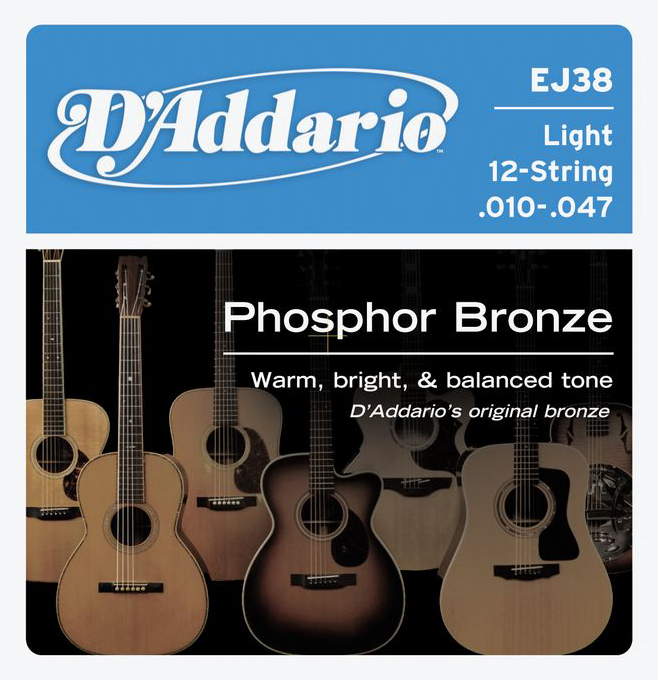 EJ38, D’Addario’s most popular 12-string set, offers the ideal balance of volume, projection and comfortable playability. Designed for all makes and models of 12-string acoustic guitars.