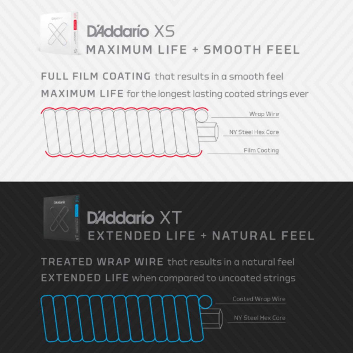 - XS Phosphor Bronze strings have the longest life of any D’Addario mandolin string, thanks to the ultra-thin XS film coating.