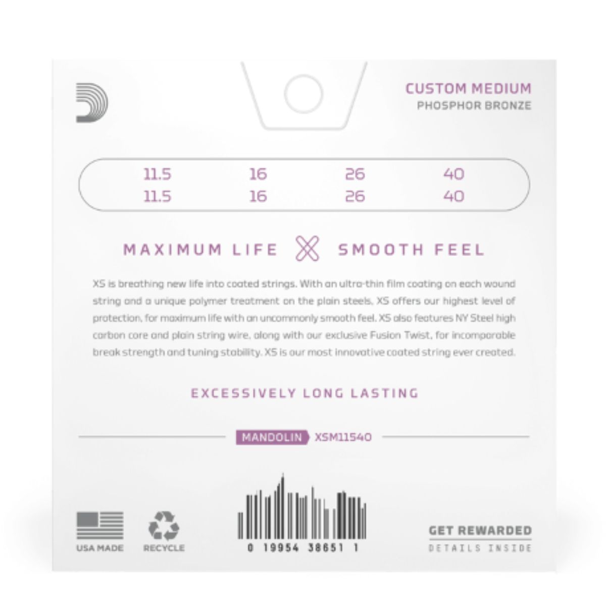 D’addario XSM 11540 | Custom Medium, XS Phosphor Bronze Mandolin Set | 11.5-40