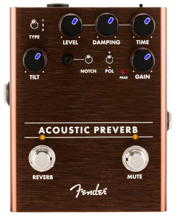 Reverb enhances the tone and natural beauty of an acoustic guitar and Fender’s Acoustic Preverb provides that and more. Featuring three distinctly voiced-for-Acoustic-guitar reverb settings and a high-fidelity preamp, this pedal is the ultimate ambience machine. The Notch filter and polarity switch are designed to eliminate feedback while the Tilt knob allows you to control your overall EQ balance.