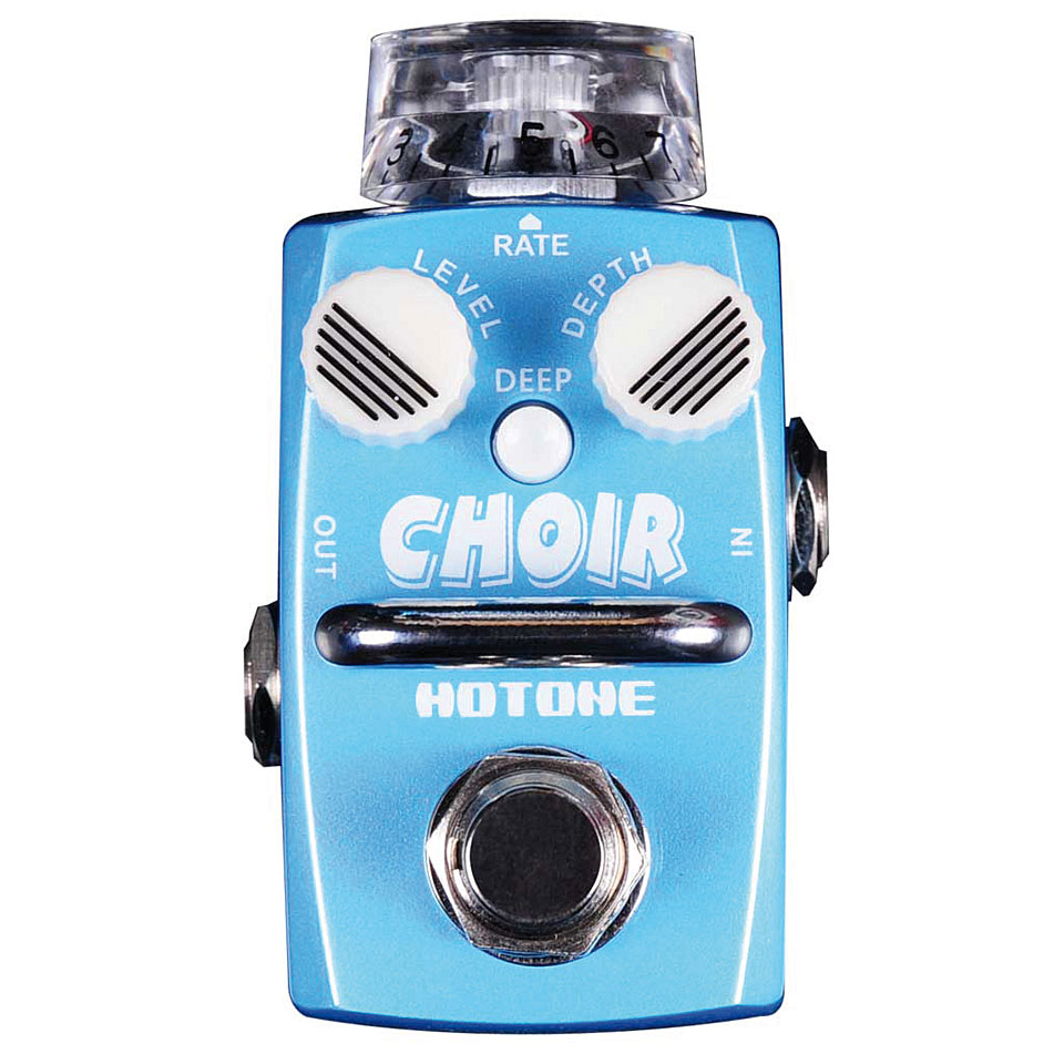 — The smallest analog Chorus Pedal on the market at a third of the size of its competitors. The Hotone CHOIR features a range of controls to provide a spacious tone, all housed in a hard wearing Zinc Alloy casing with glow in the dark and LED light-up control knobs.