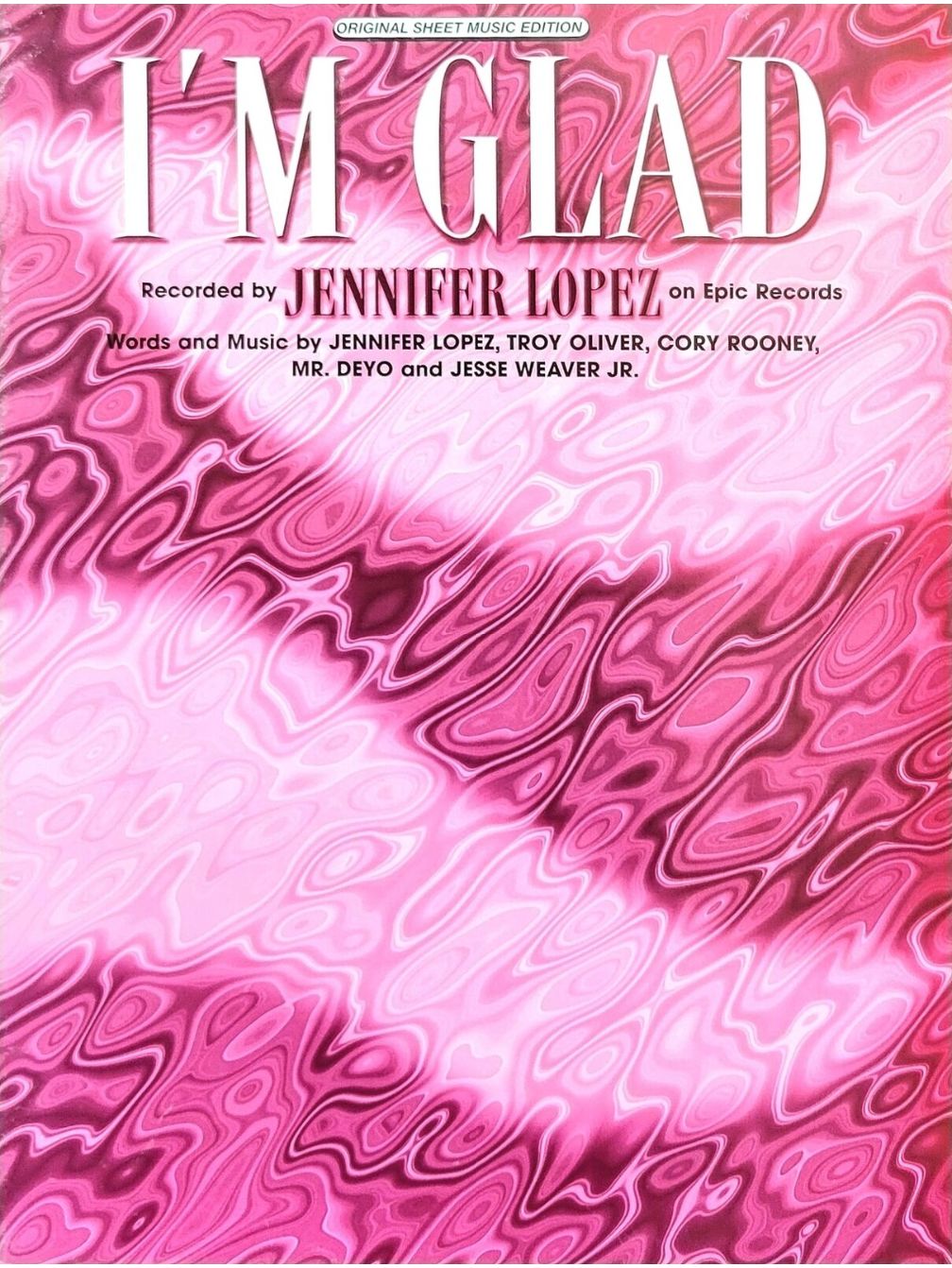 The Hit Song “I’m Glad” Music and Lyrics by Jennifer Lopez, Troy Oliver, Corey Rooney, Mr. Deyo, and Jesse Weaver Jr, arranged for Piano and Vocal with Guitar Chords