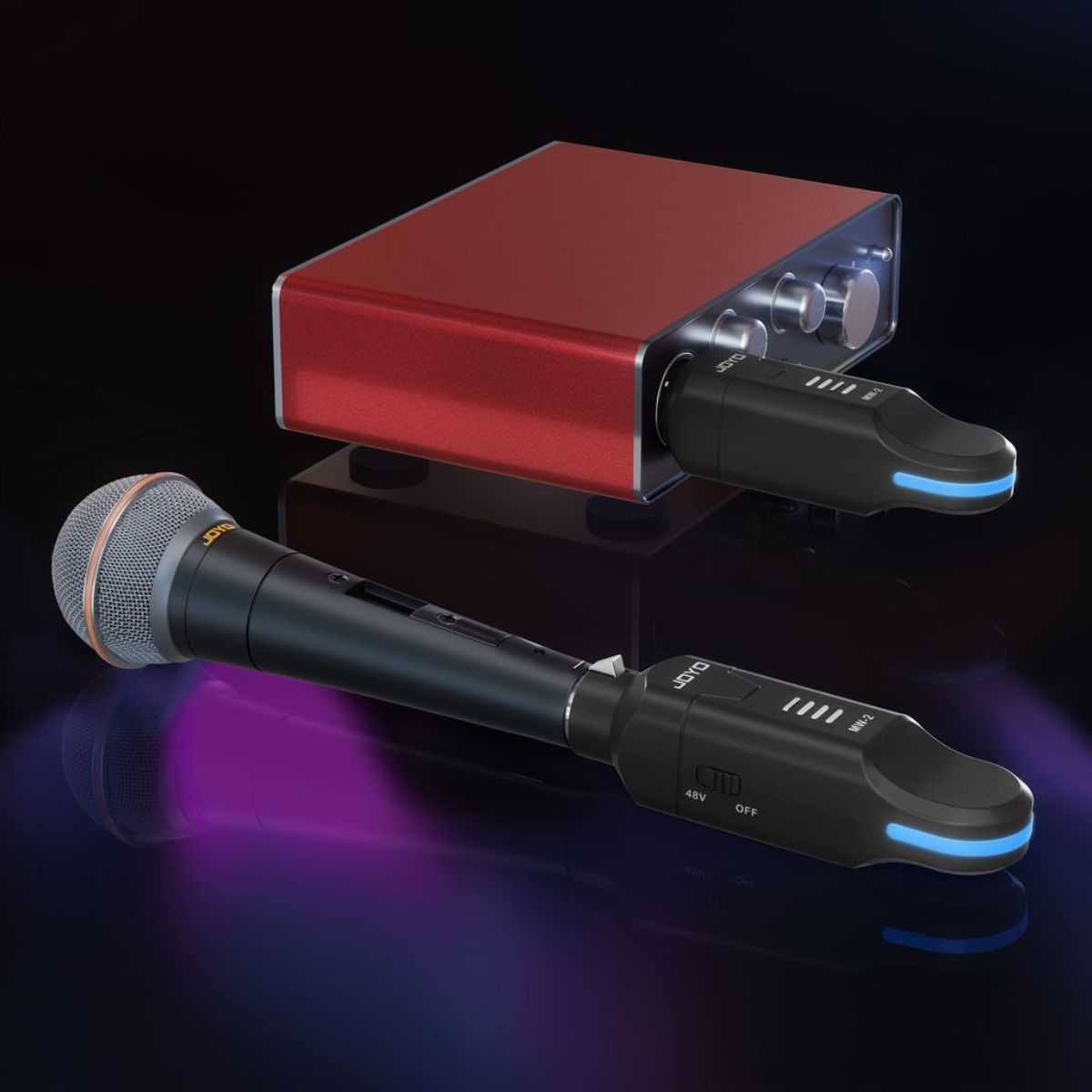 - 2.4GHz Wireless Microphone Auto-Pairing System: Instantly convert wired microphones to a pro wireless setup via plug-and-play. Optimized for dynamic microphones. Compatible with condenser microphones requiring 24V or lower phantom power only. Electromagnetic interference and microphone shielding variations may cause noise with some condenser models. For best results, we recommend using dynamic microphones or testing other alternative microphones.
