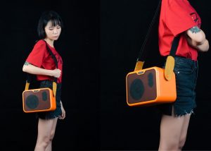 The MA-10 series is compact and portable. There are 2 hidden shoulder strap buckles on both sides of the amp. The Buckles are fully rotatable (Strap not included but a standard guitar strap will function)