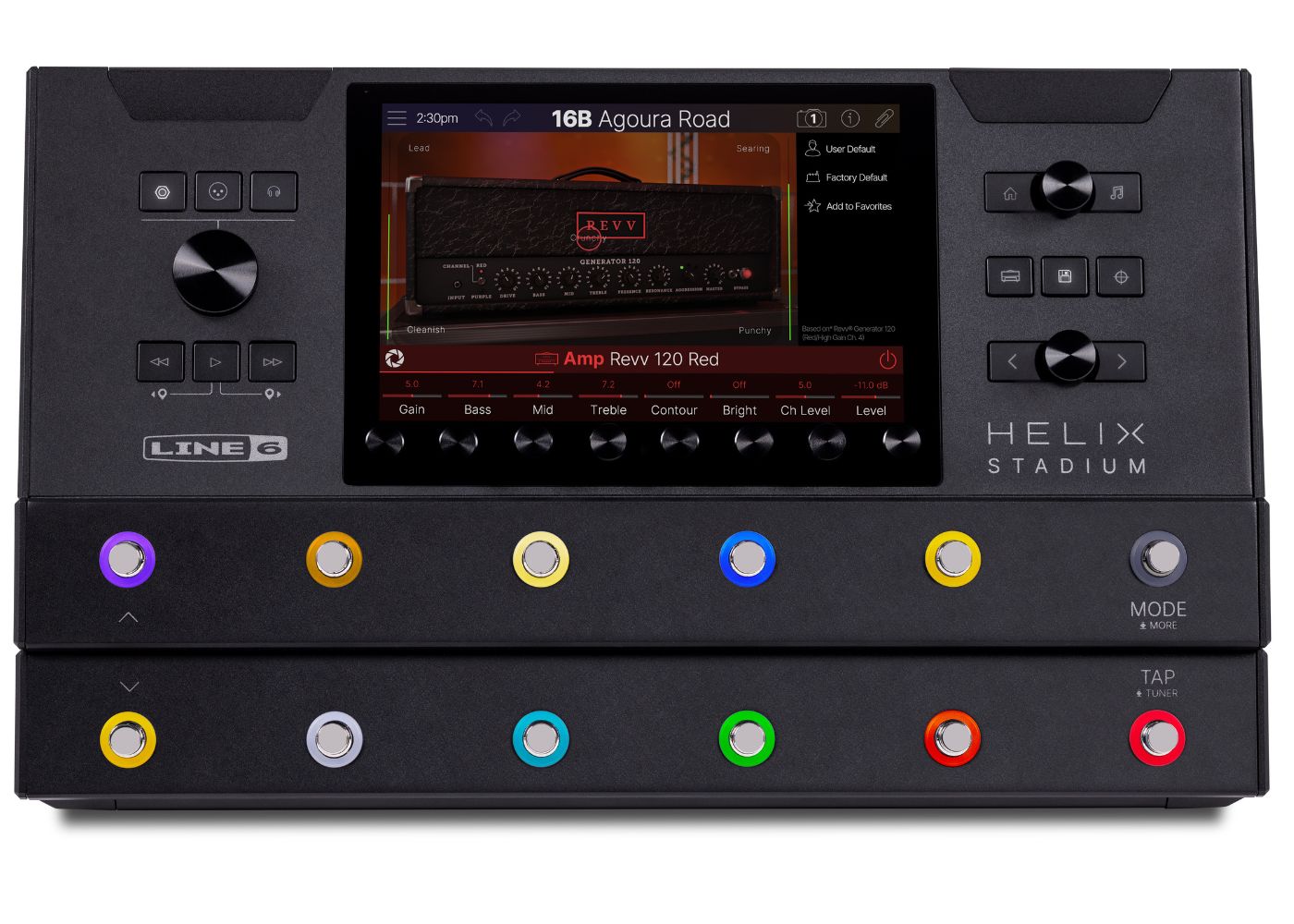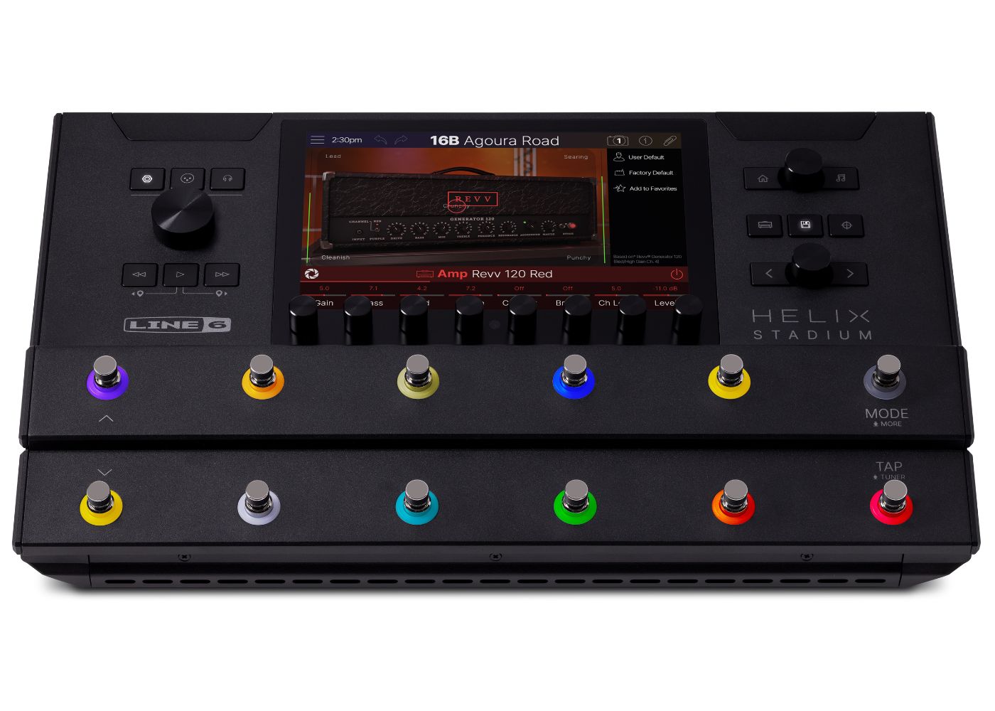 At the heart of the sophisticated yet intuitive user interface is a high-resolution 8″ touch screen that works in tandem with the 11 knobs, 13 buttons, and 12 footswitches to create one of the most ergonomic, intuitive, and inspiring user interfaces available. Its many features include Focus View with contextual parameter control, Preset Audition audio clips, and explanatory information text for most parameters.