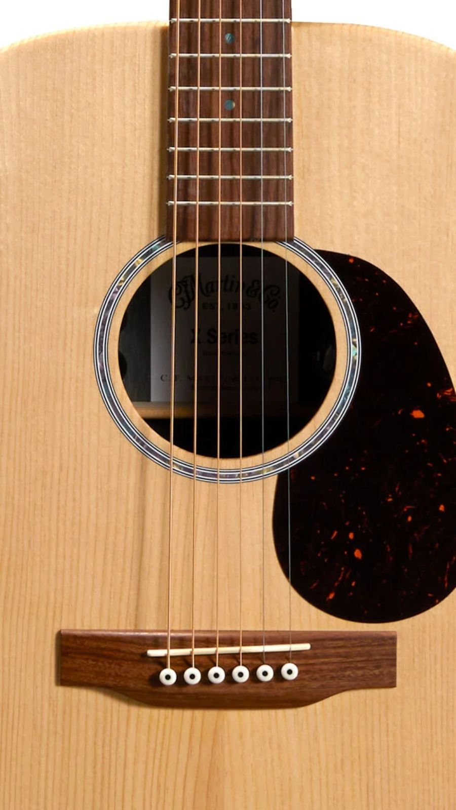 The X Series is made to play. The acoustic-electric 000-X2E Brazilian features a hand-rubbed satin spruce top with an elegant abalone pattern rosette and eye-catching Brazilian rosewood pattern high-pressure laminate (HPL) back and sides for added durability and looks, without sacrificing that classic Martin sound. Playability enhancements include a thinner fingerboard with a gently bevelled comfort edge and refined string spacing, and a modernized bridge contour for a smooth and comfortable playing experience. It also features a select hardwood neck, fingerboard, and bridge for improved sound and sustain, and Martin E-1 electronics with a built-in chromatic tuner and volume, tone, and phase controls. The 000-X2E Brazilian provides balanced tone across all six strings, unplugged or plugged in, letting you play how you want, wherever you want. All X Series models come with a softshell case
