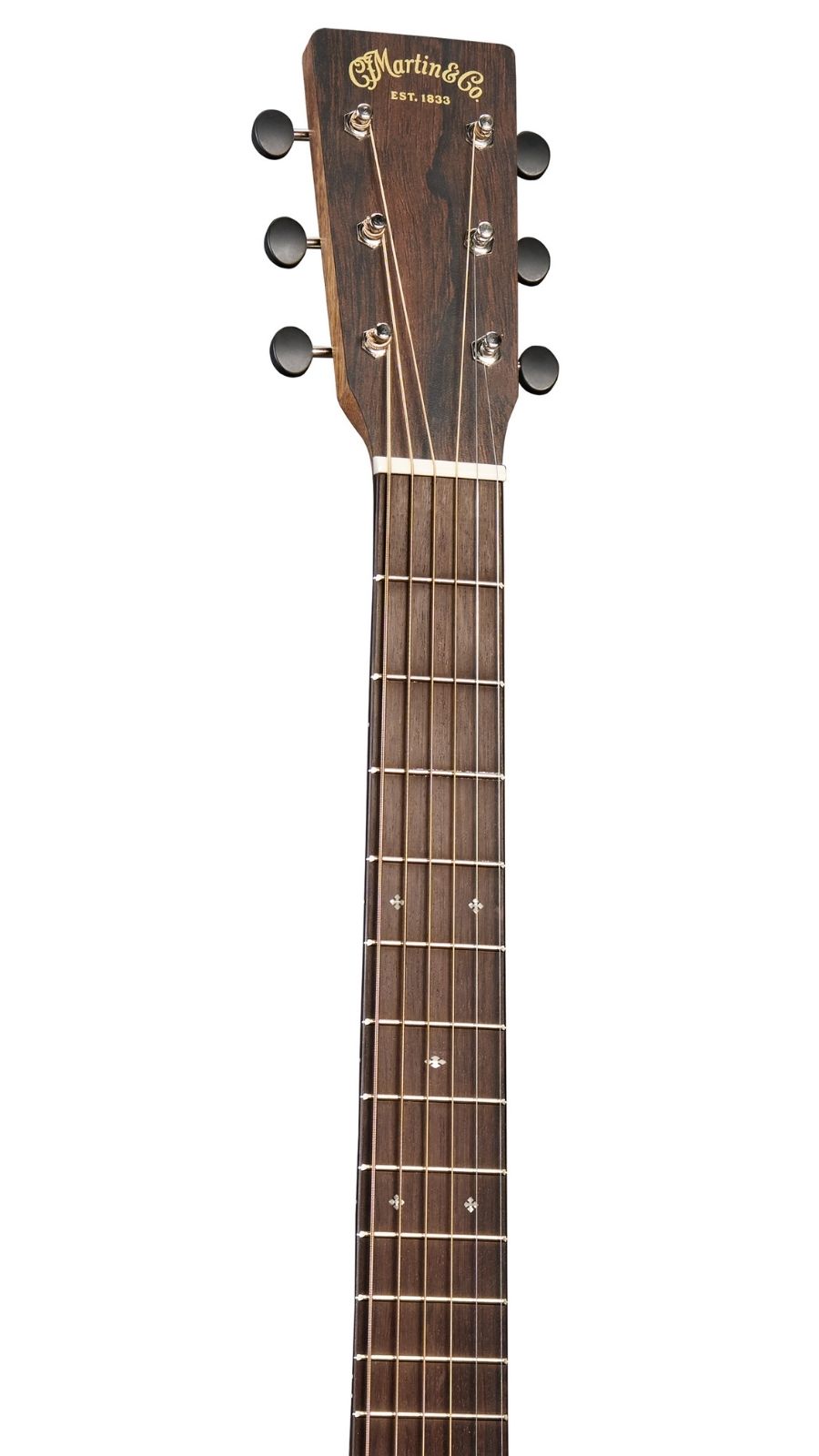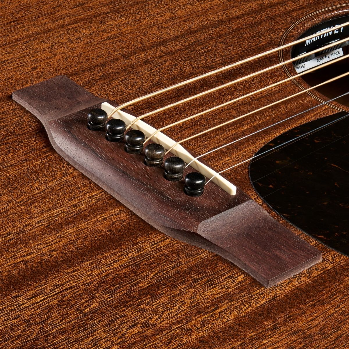 The stripped-down aesthetic embraces classic Martin tradition. A satin finish highlights the natural grain of the sapele, while diamond-and-square inlays on a select hardwood fingerboard nod to the vintage Style 15 lineage. Vintage-style open gear tuners provide reliable tuning stability while reinforcing the retro vibe. A Performing Artist neck with high-performance taper adds a modern playability edge, keeping the guitar comfortable for long sessions.