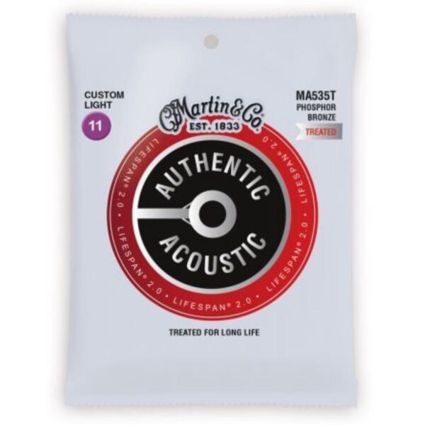 Martin’s next generation Lifespan 2.0 strings are engineered using a new, patented technology only available from Martin. This technology was developed to protect the core wire and the wrap wire to prevent corrosion without compromising tone – the single most important attribute of the guitar strings. Authentic Acoustic Lifespan 2.0 strings look better, sound better, and feel better, providing a smooth playing experience that reduces finger drag. We invested two years developing our next generation Lifespan 2.0 strings to ensure they will sound better, longer than any other extended-life string on the market. Available in 80/20 Bronze and 92/8 Phosphor