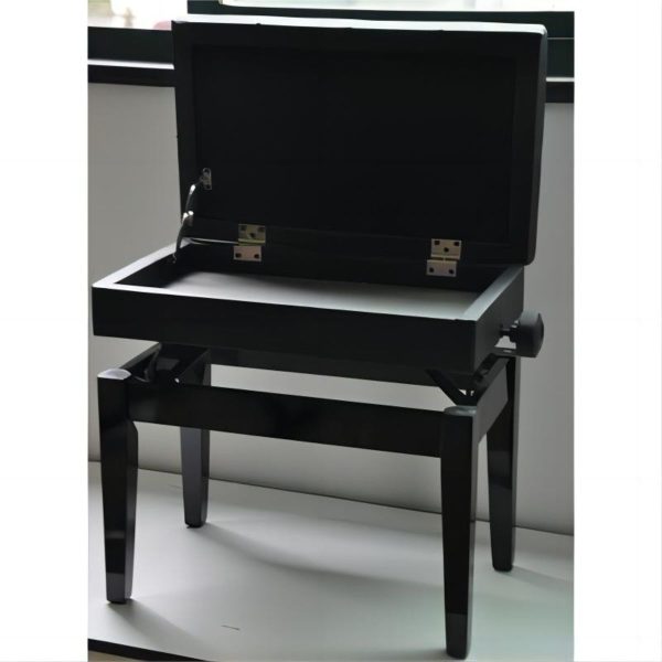 Apextone Height Adjustable Piano Stool with Sheet Music Storage Compartment under seat in a Black Finish