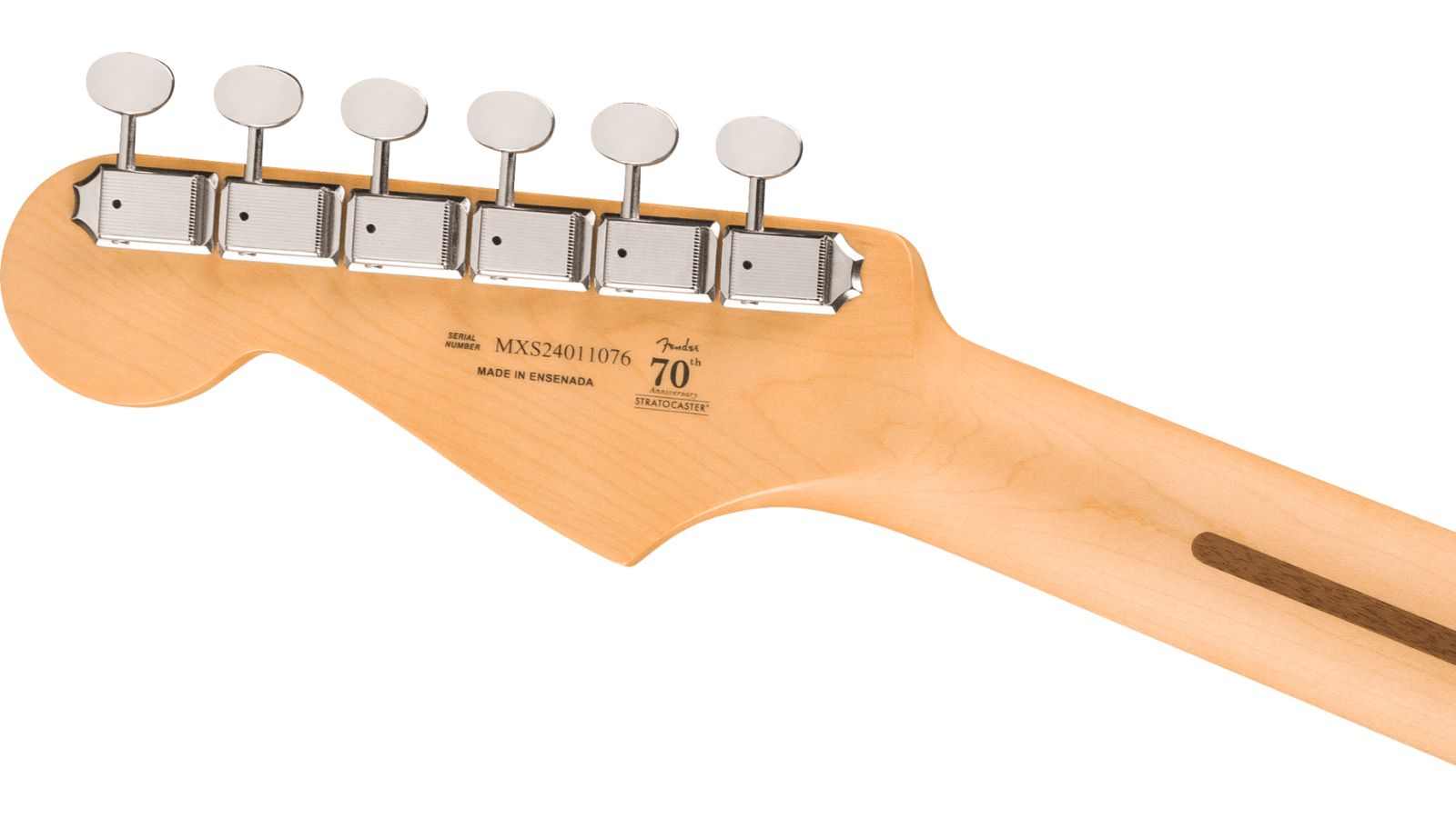 This Stratocaster features a two-point Synchronized Tremolo with bent steel saddles for definitive Strat tone with superior tremolo action for the most expressive vibrato and most daring dive bombs.