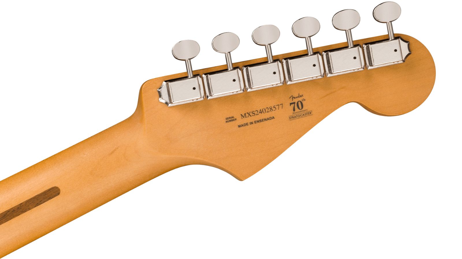 This Stratocaster features a two-point Synchronized Tremolo with bent steel saddles for definitive Strat tone with superior tremolo action for the most expressive vibrato and most daring dive bombs.