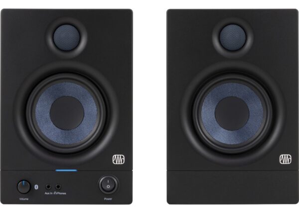 PreSonus® Eris®-series studio monitors are used worldwide by audio engineers and producers who need to hear every detail of their recordings. Eris 4.5BT media reference monitors deliver studio-quality sound in an elegant, compact form factor that makes them ideally suited for bedroom studios, video production, and high-fidelity gaming setups.
