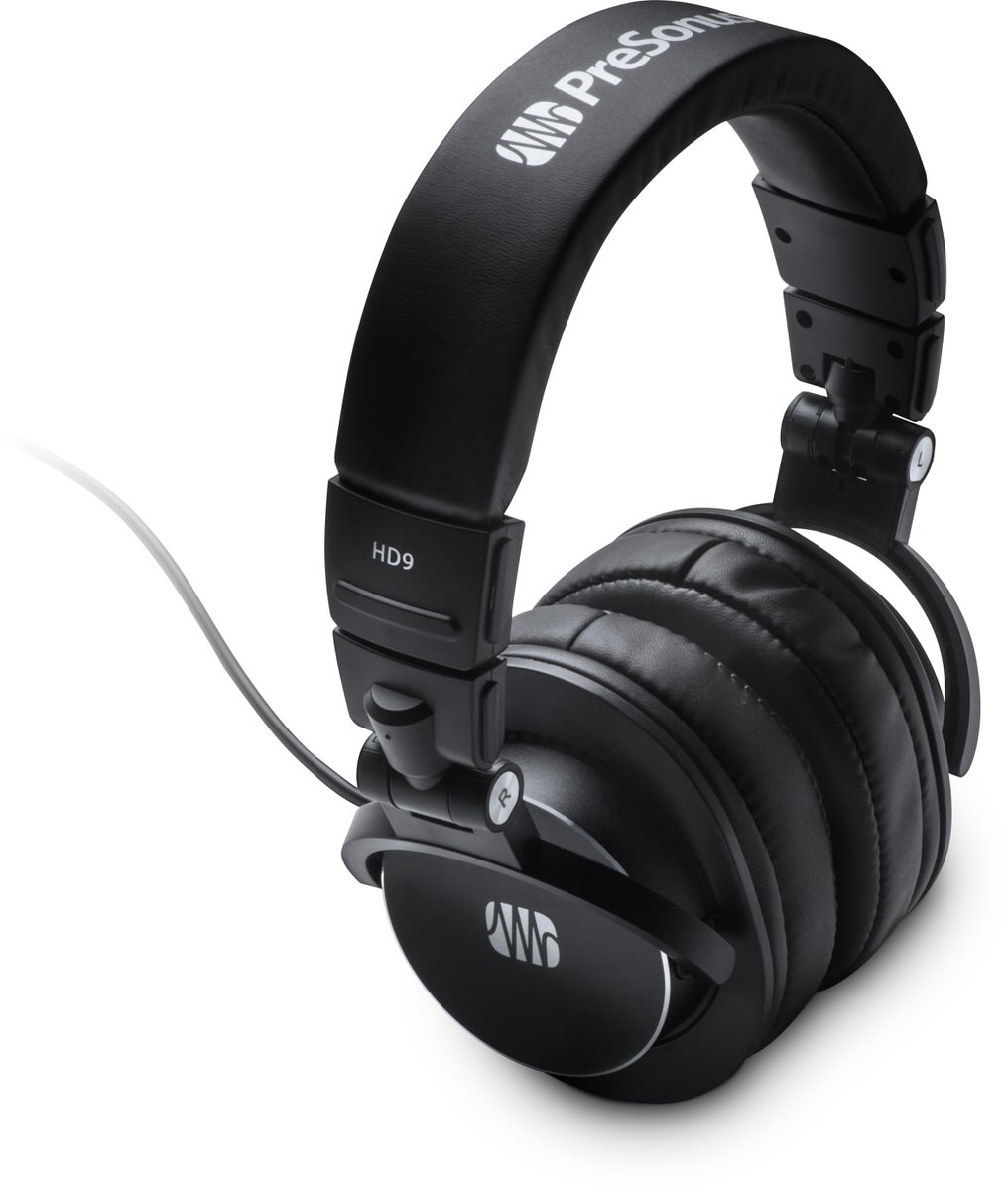 PreSonus® HD9 professional studio headphones feature 45 mm dynamic, neodymium drivers in a closed-back acoustic design that provides superior listening isolation and reduces headphone bleed. Its tailored frequency response extends all the way from 10 Hz to 26 kHz, with accurate bass response, enabling precise mixes. The HD9 offers high power handling (900 mW per channel into 40 ohms) while providing comfort, durability, and reduced listening fatigue.