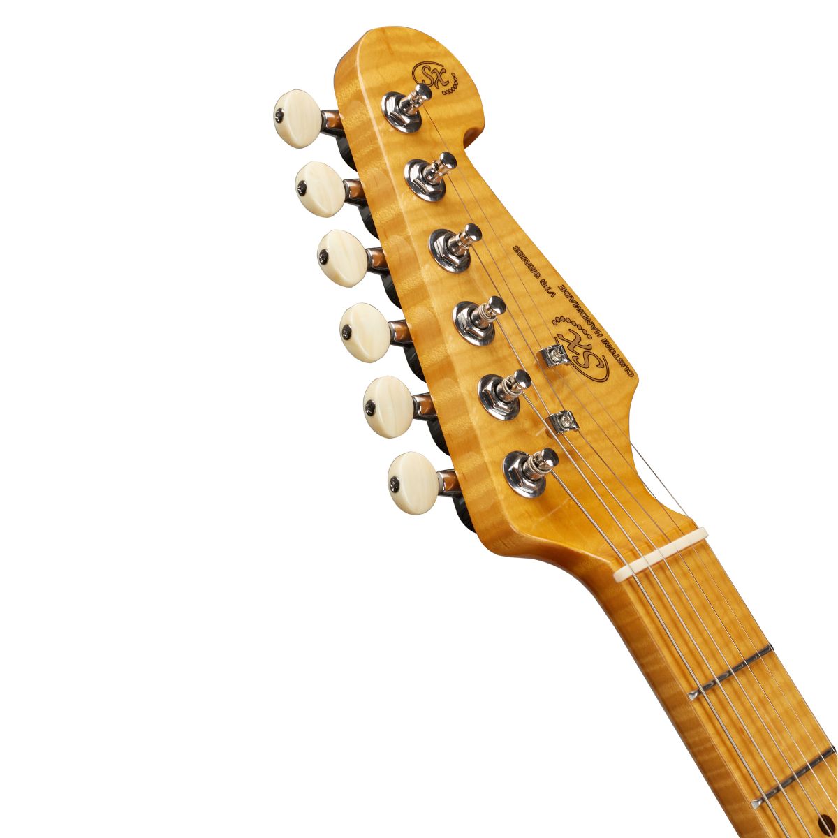 - Machine Heads: SZMHG502-OV, Die-Cast/Sealed, Chrome with Pearl Buttons