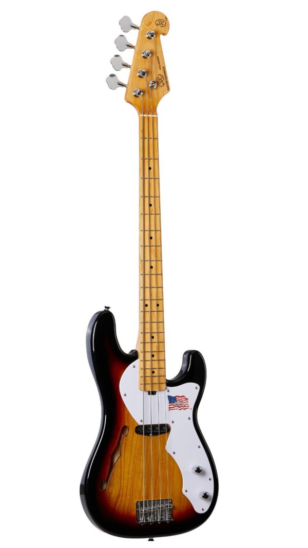 SX SBA2PH Semi Hollow Body Swamp Ash Bass | Maple Neck | 3 Tone Sunbursr