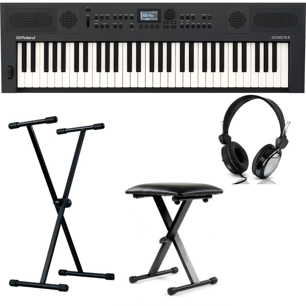 Roland GO keys 5 Bundle | Graphite | with Stand, Headphones and Bench