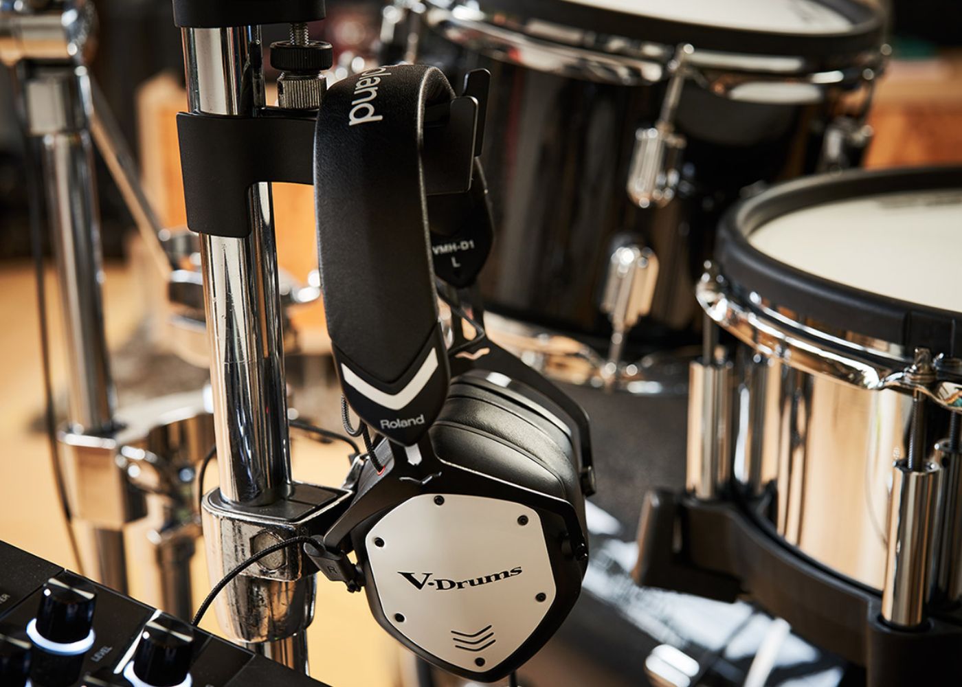 The VMH-D1 is the first collaboration between the Roland V-Drums team and V-MODA, the leading name in headphones for DJs and electronic musicians. Working closely through many development stages, they crafted a special design that couples custom 50 mm drivers with select materials and new mounting methods to accurately translate the aggressive transients, wide frequency range, and rich overtones of every electronic drum set. And if you play a V-Drums kit with Prismatic Sound Modeling, PureAcoustic Ambience, and other advanced Roland sound technologies, the VMH-D1 brings them to life like never before.