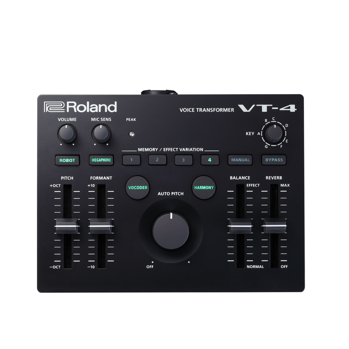 Great-sounding pitch and formant effects are hard to come by, especially without a computer. And real-time tweaking of these effects often results in nasty artefacts and other unpleasantness. With the VT-4 you have totally smooth, instant control over both pitch and format, with dedicated faders for each. Dramatically change your entire persona from male to female, big to small, or good to evil—the choice is yours.