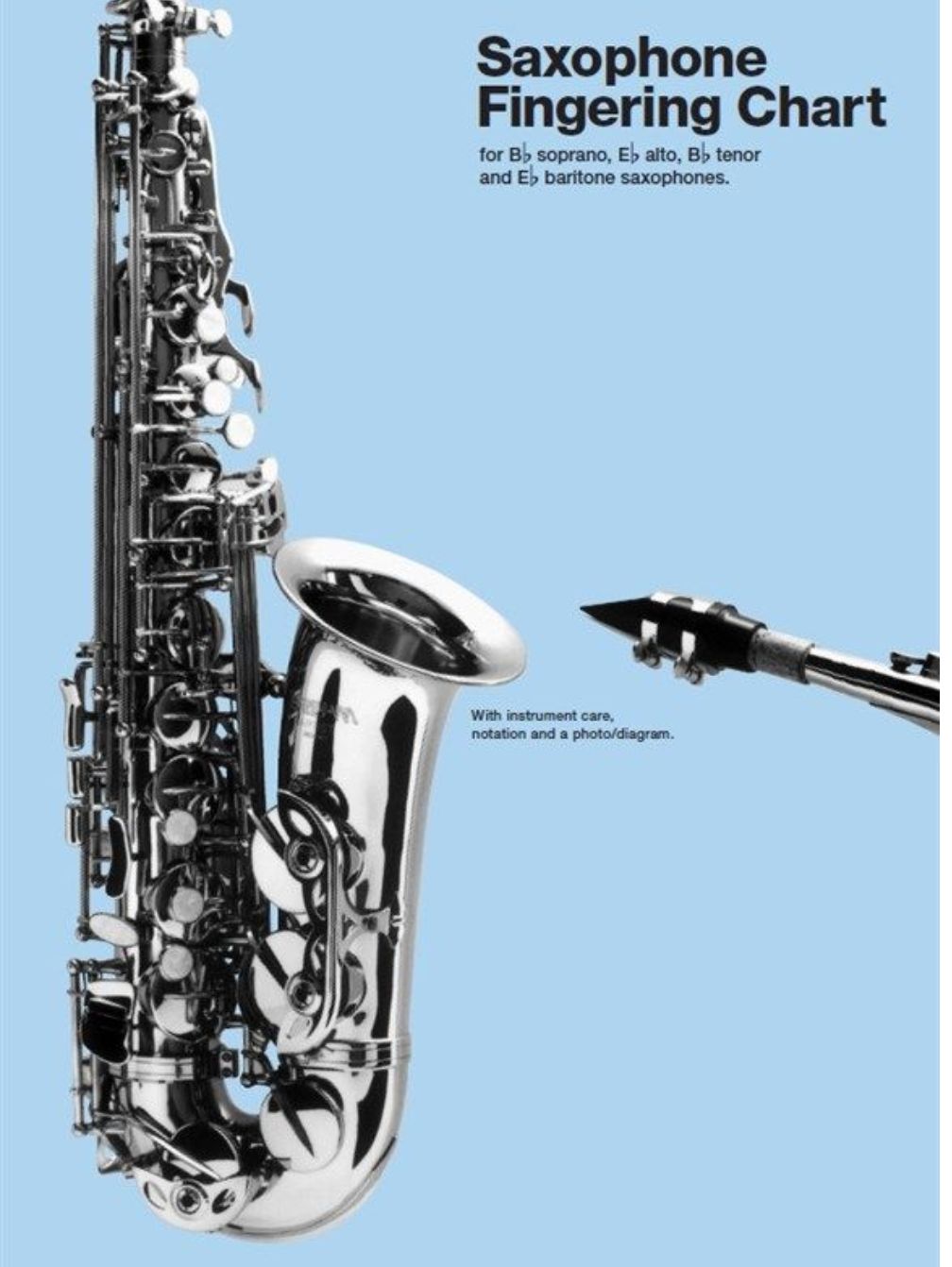 Beautifully designed on a gatefold, laminated card, including information about instrument care, notation, and a photo/diagram. For all Saxophones.