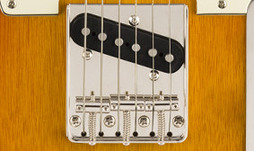 The vintage-style bridge features barrel saddles and a string-through-body design for optimal resonance.