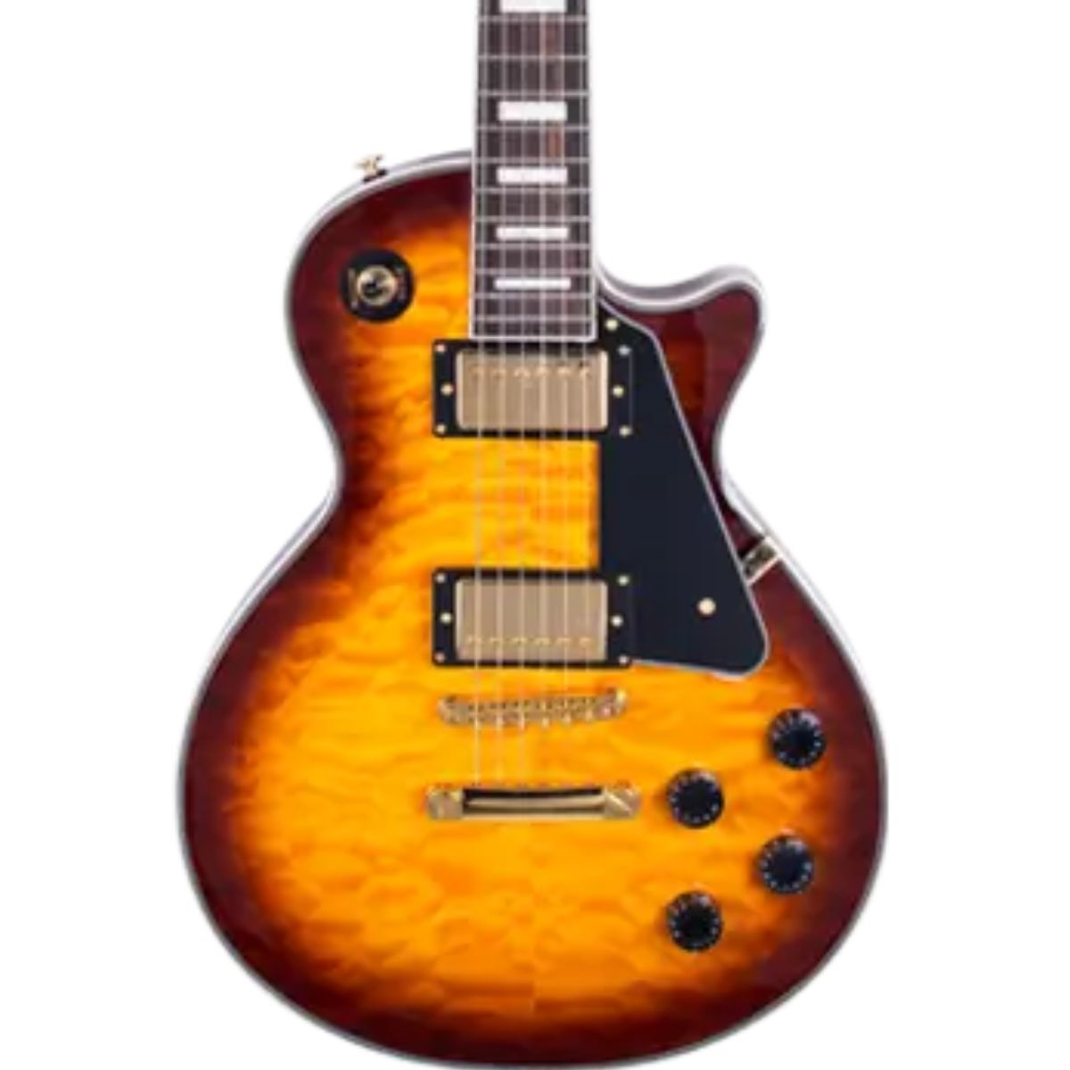 - Body: Mahogany with Maple Top and Quilted Maple Veneer