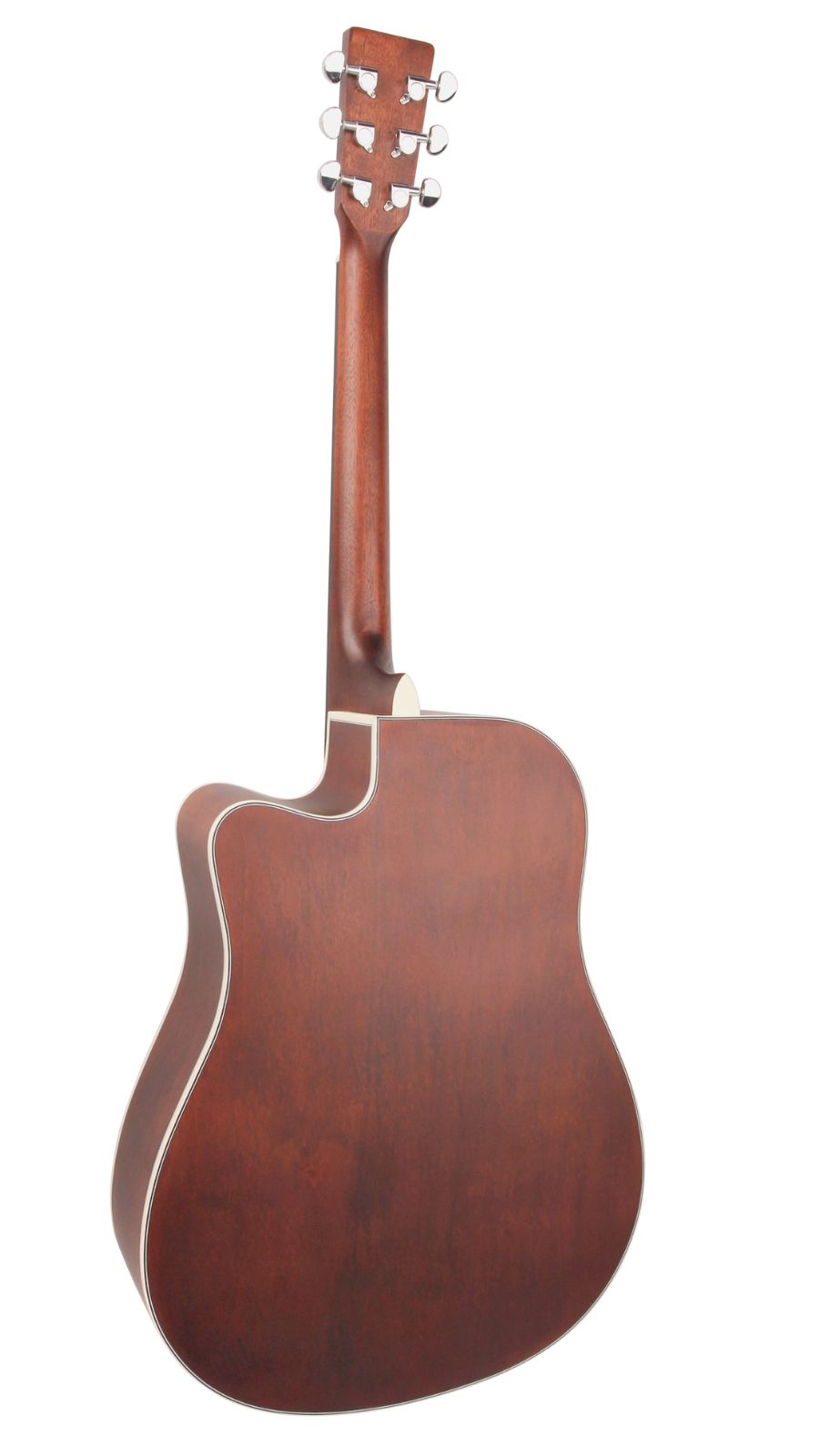 This great upgraded entry level dreadnought Electro acoustic guitar brings extra features to the guitar to embellish your learning experience, especially those who want to experiment with amplified playing. It comes with a Spruce top and a low profile Okoume neck. The quality design and manufacture along with the host of functional and aesthetic features makes this a very playable guitar and at the price, incredible value.
