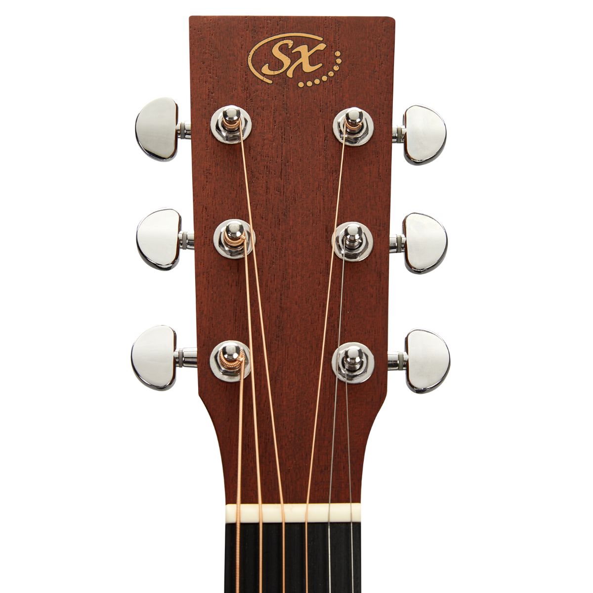 This SX SD304 upgrade Dreadnought acoustic guitar is an upgrade on the famous SD104. This Guitar come with a Sitka Spruce Top, Mahogany Back and sides, Okoume wood neck and engineered rosewood neck for a lovely warm sound and appearance. This is a well-made guitar with a host of functional and aesthetic upgraded features. It really is an excellent value instrument.