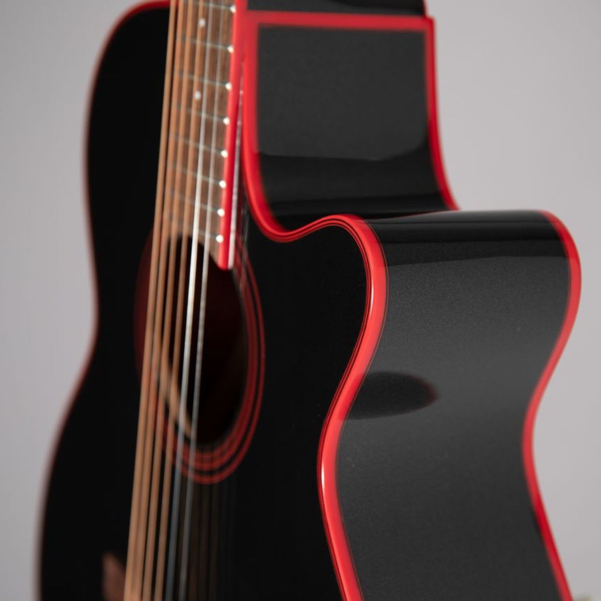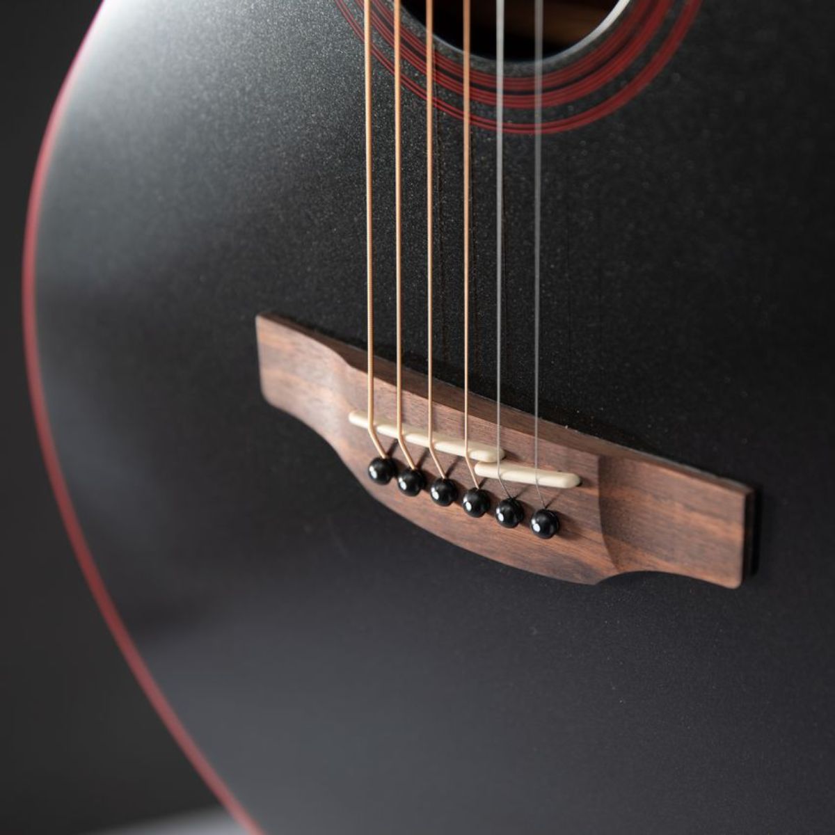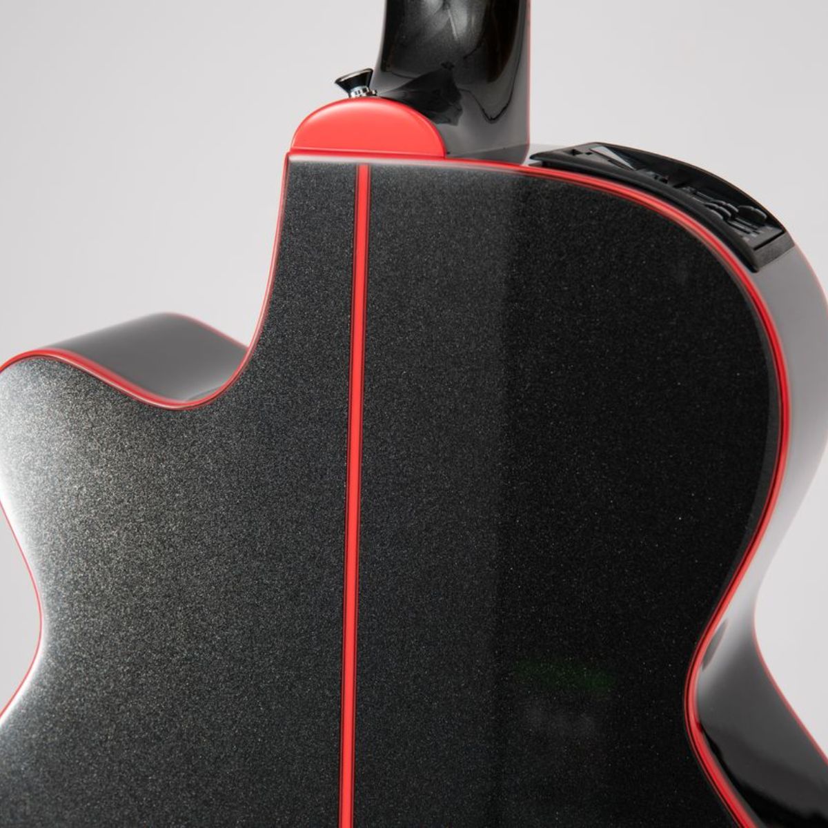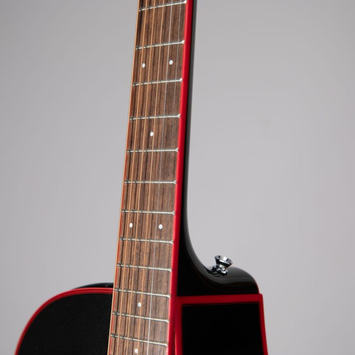 Here’s an outstanding flashback to Takamine’s ‘80s-era heritage! The GF49CE CB is totally awesome in its Cosmic Black Sparkle finish and classic red binding! Beneath the distinctive colours lives a great FX-sized cutaway with a spruce top and sapele back and sides. This combination gives the guitar tremendous warmth and volume that belies its compact size. The neck is sleek, and it showcases Takamine’s legendary playability. Of course, it might get loud… a task easily accomplished when you plug it in, using its built-in TP-3G electronics. Turn it up!