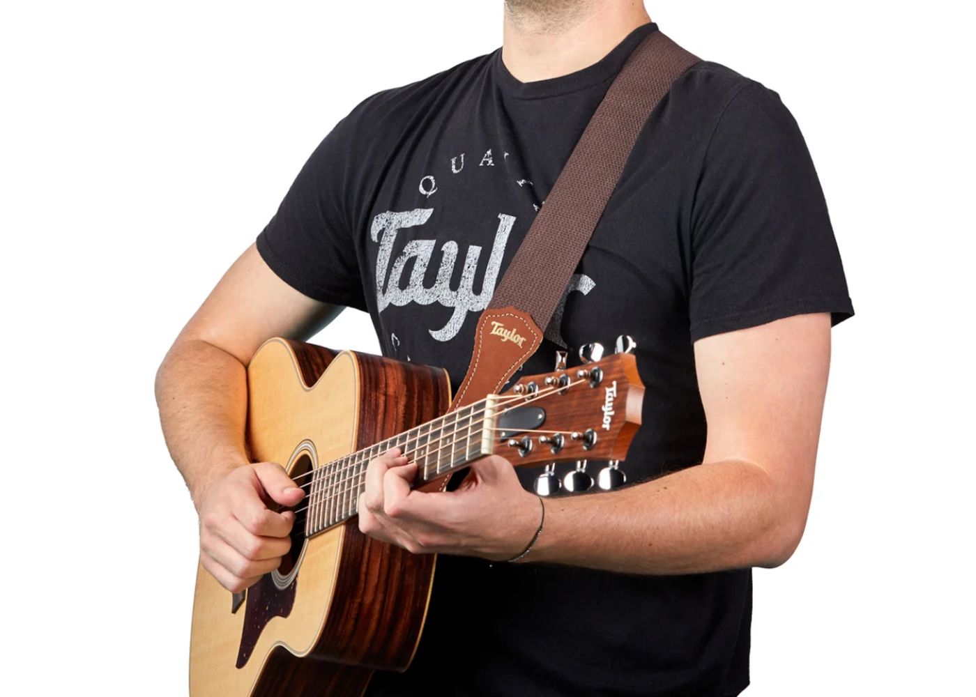The Taylor GS Mini Guitar Strap is sharp and practical, a perfect complement for any GS Mini Guitar. This strap is made from premium natural cotton with genuine suede end tabs. It also features an embossed gold Taylor logo and is available in black, chocolate or tan. Made in the USA.