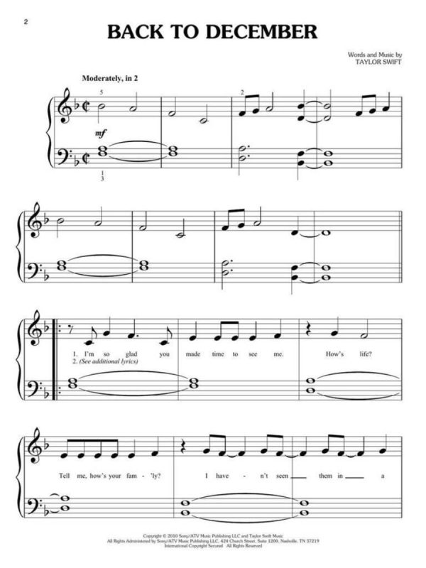 16 of pop/country crossover queen Taylor Swift’s best in big-note piano arrangements so beginning pianists can play her hits: