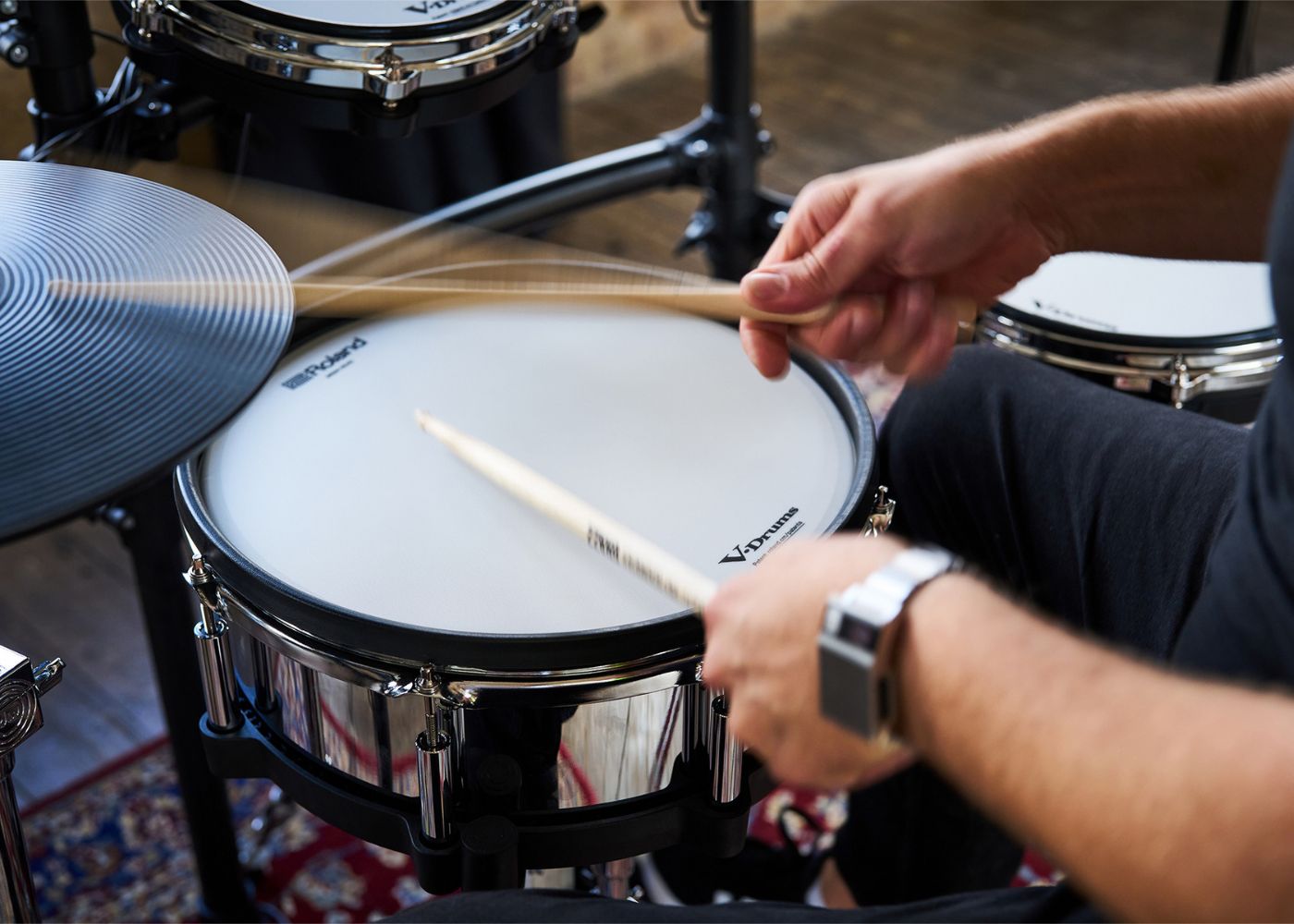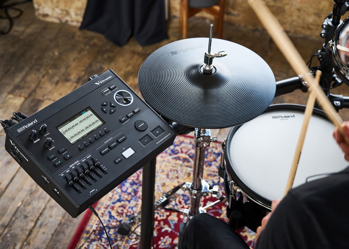 - Next-generation 12-inch Roland V-Pad with a premium build and acoustic-style aesthetics