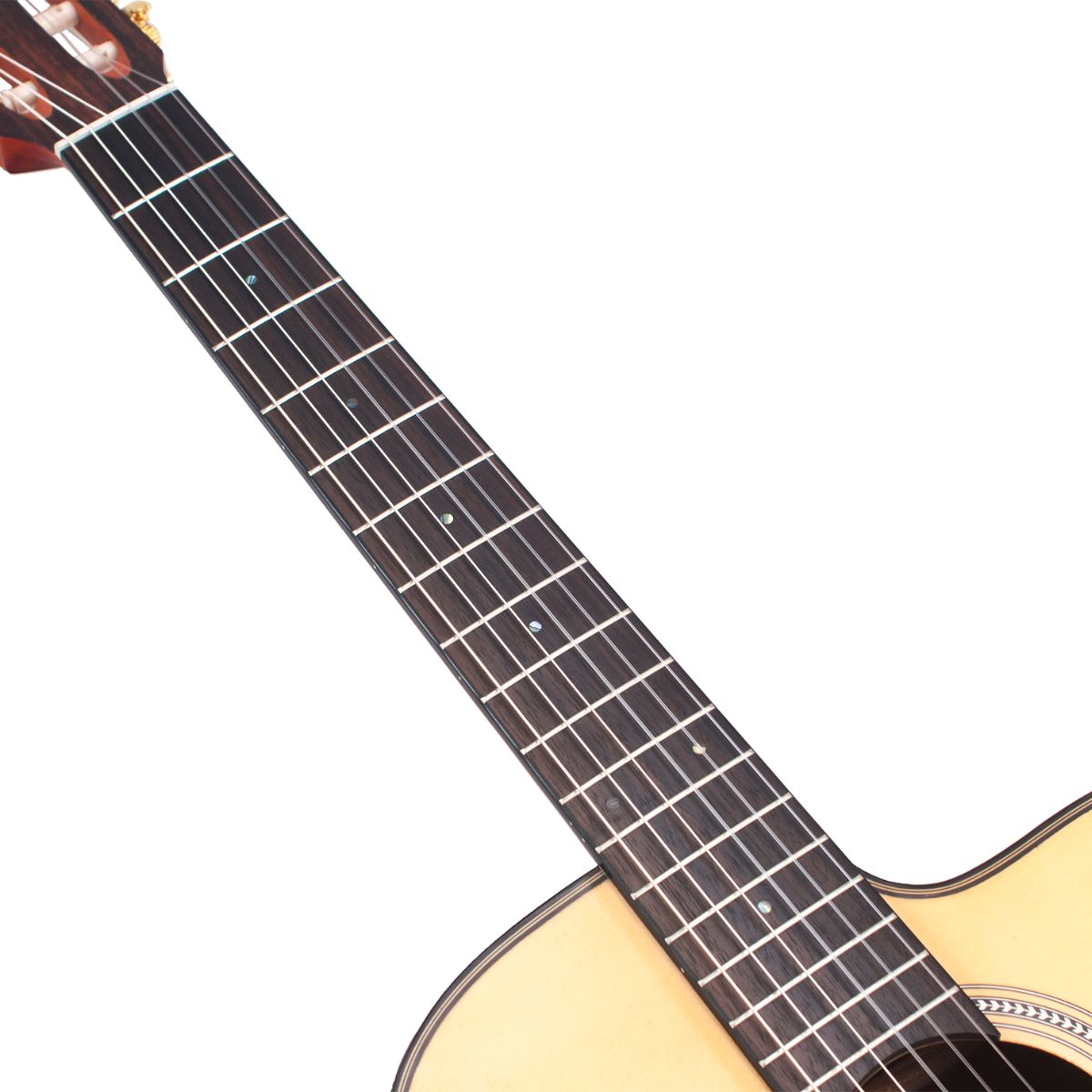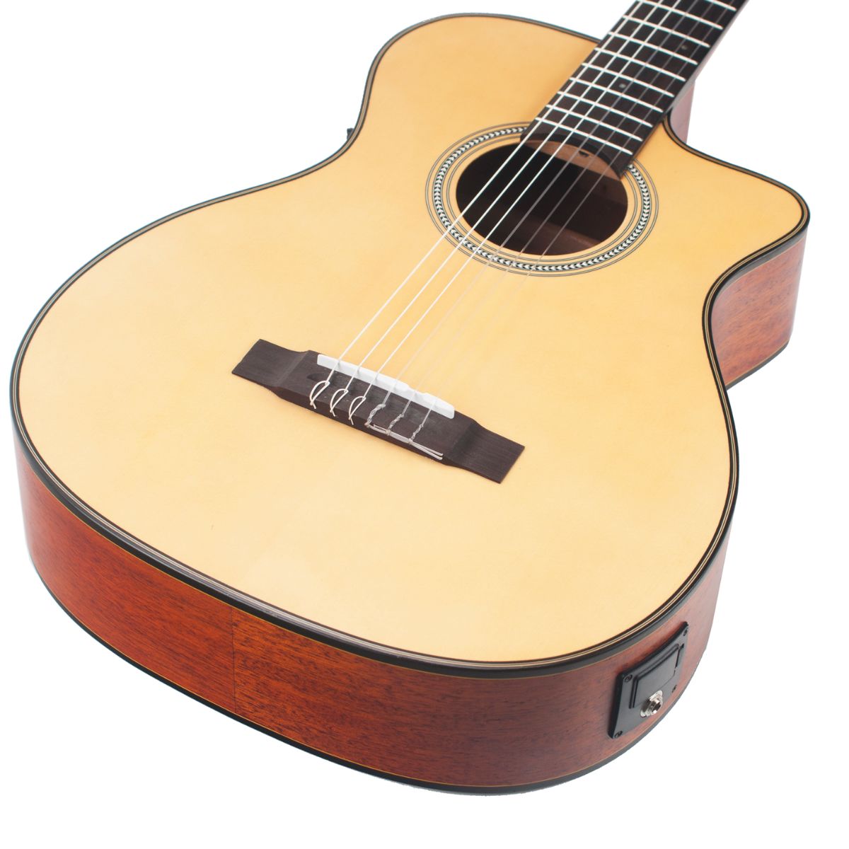 Players will appreciate the distinctive tonal flavors of a nylon string guitar coupled with a sleek, ultra-playable neck and styling that steel string acoustic guitars are known for.