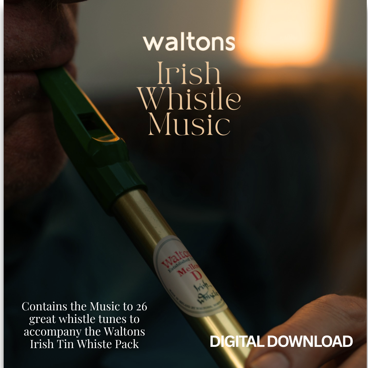 The Waltons Whistle Pack available also to purchase with this digital download contains a Waltons brass D whistle, an easy-to-use book with instructions in six languages (English, French, Spanish, German, Italian and Japanese) that includes 27 Irish and international tunes.