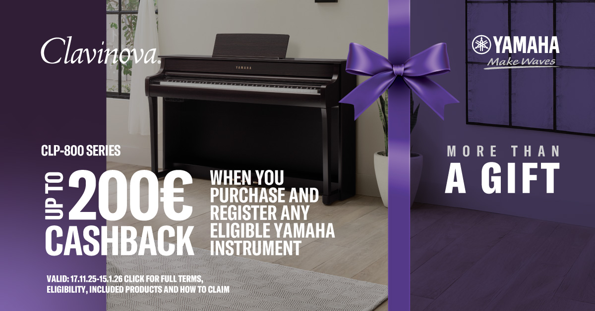€150 Cashback offer available on the Yamaha CLP 845. Please see the attached link to view Yamaha’s More Than A Gift Campaign’s full T & C’s: Link