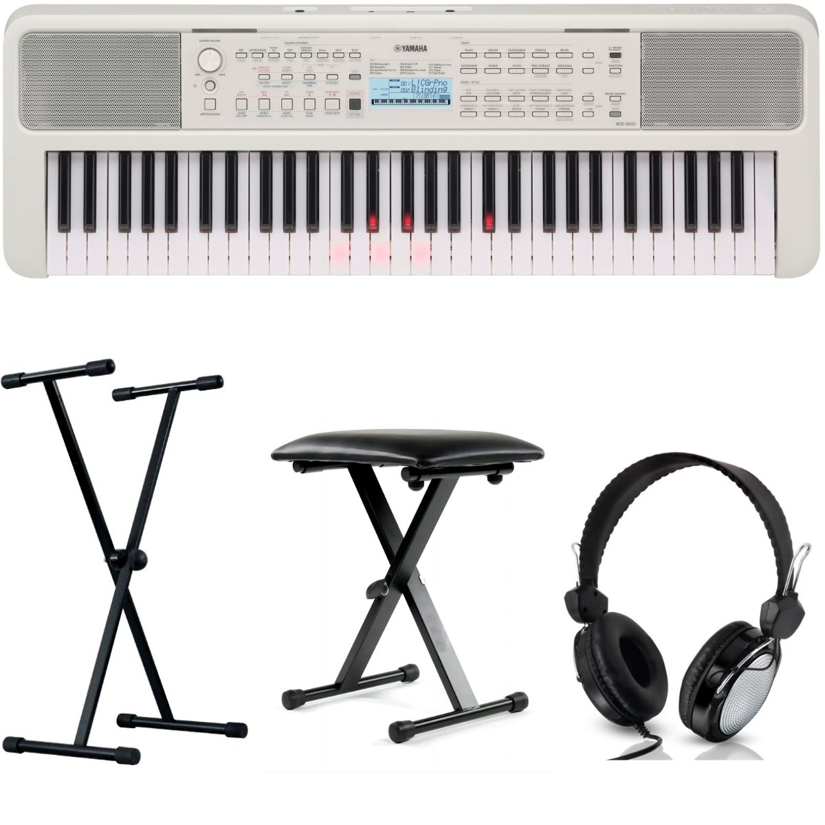 Yamaha EZ310-2 Bundle with X style Stand, Bench and Headphones | White