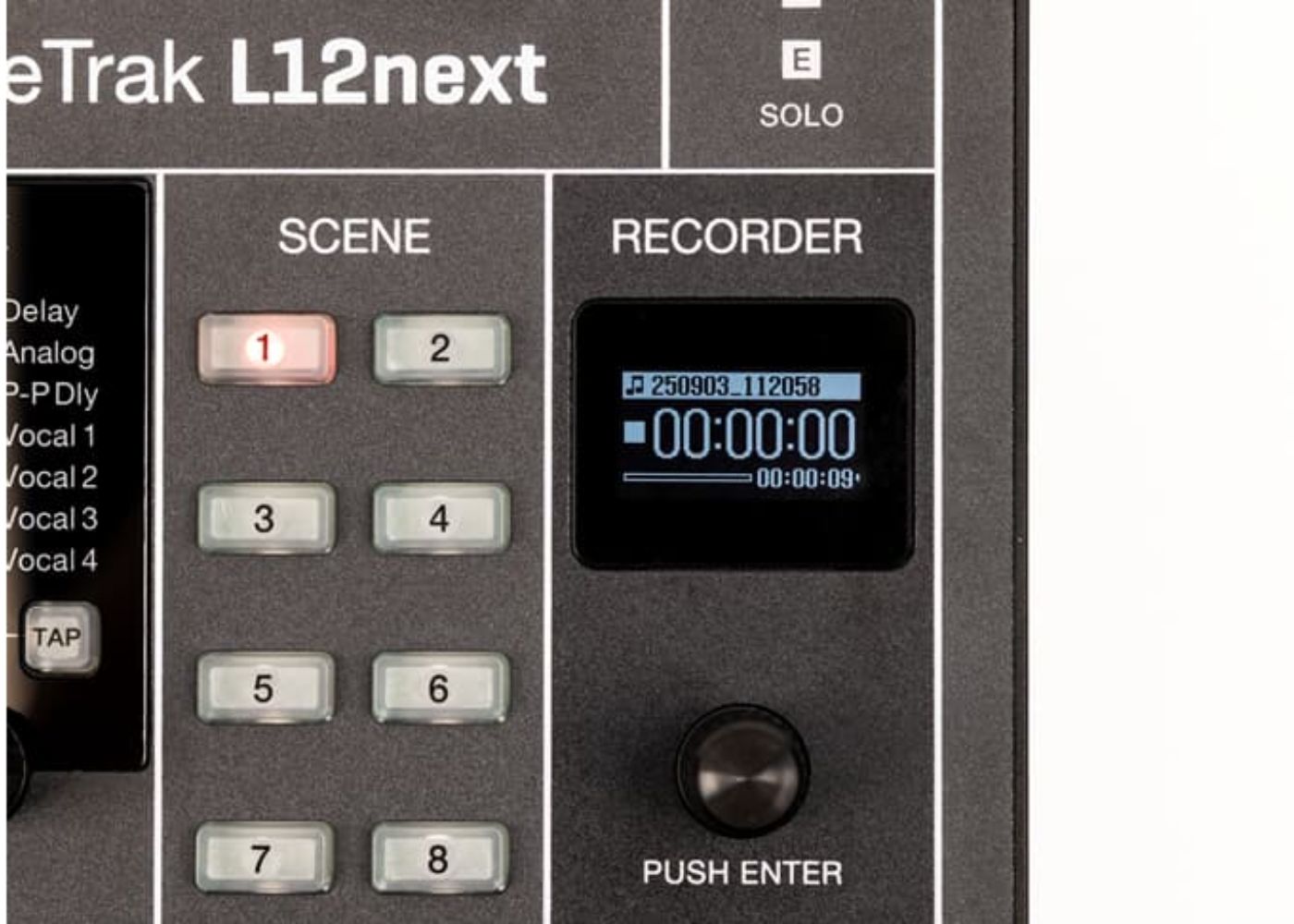 The L12next has advanced recording features and captures up to 14 tracks at 24-bit/96 kHz plus a stereo mix. Its new OLED screen streamlines recording controls and setup.