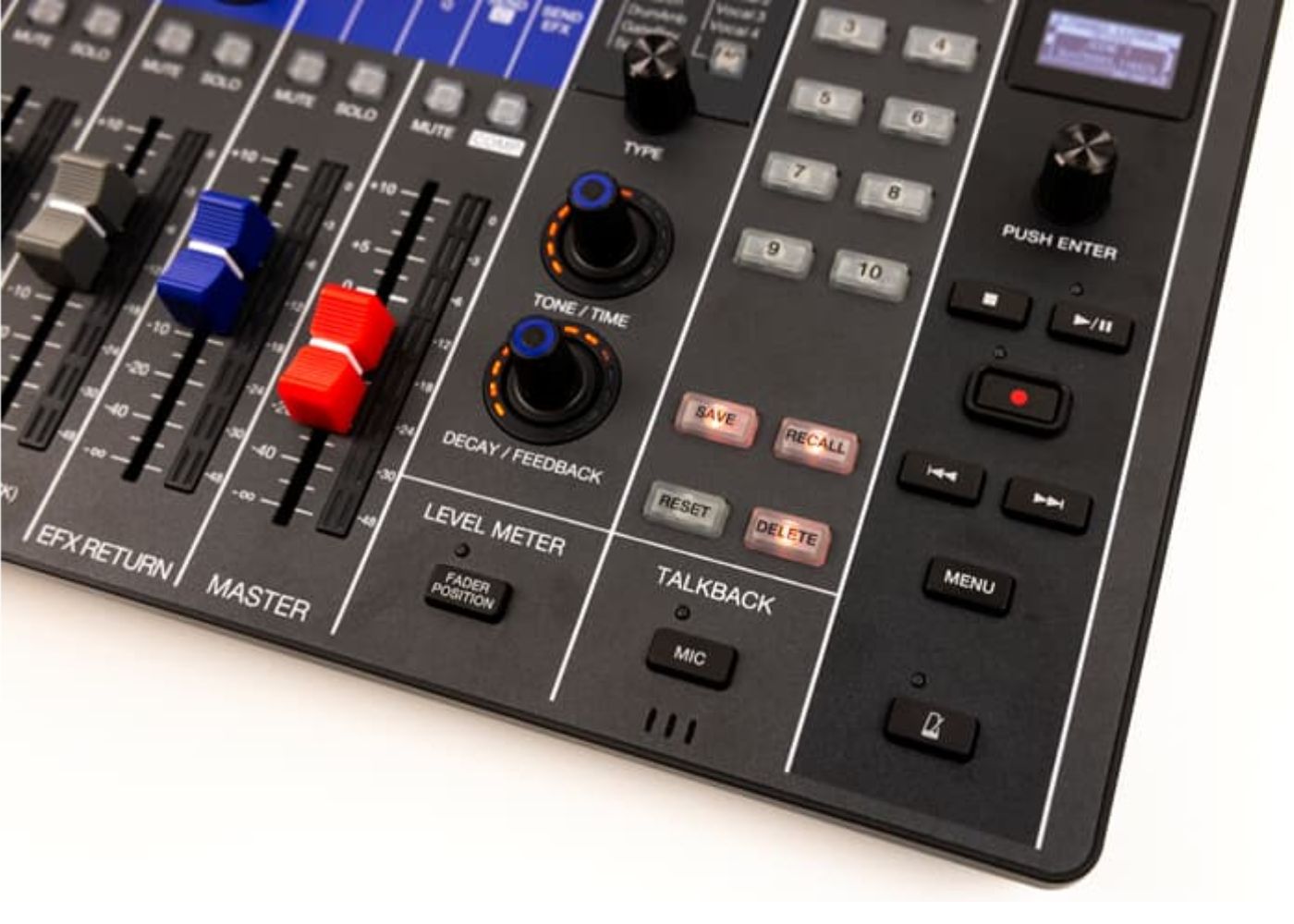 In addition to 60mm faders, each channel has three multi-function encoder knobs, giving you analog style control of gain, EQ, compression, panning, and sends. No more scrolling through menus.