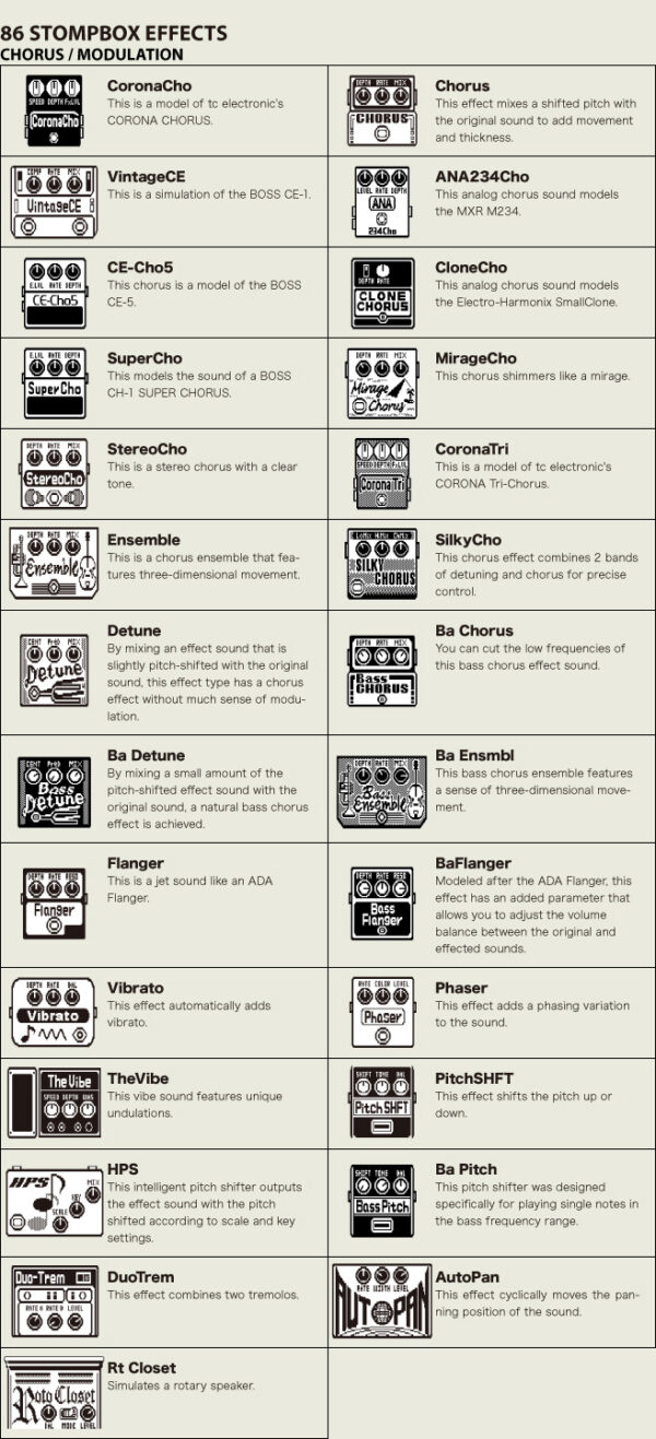 The MS-70CDR’s compact, easy-to-use design features a large LCD, single footswitch and analog-style cursor keys/parameter knobs. Together, they allow you to easily control the pedal’s 86 diverse effects types, including some of the world’s most popular chorus, delay and reverb pedals (SuperCho, AnalogDly, Spring, etc.), as well as create and store up to 50 of your own sounds.